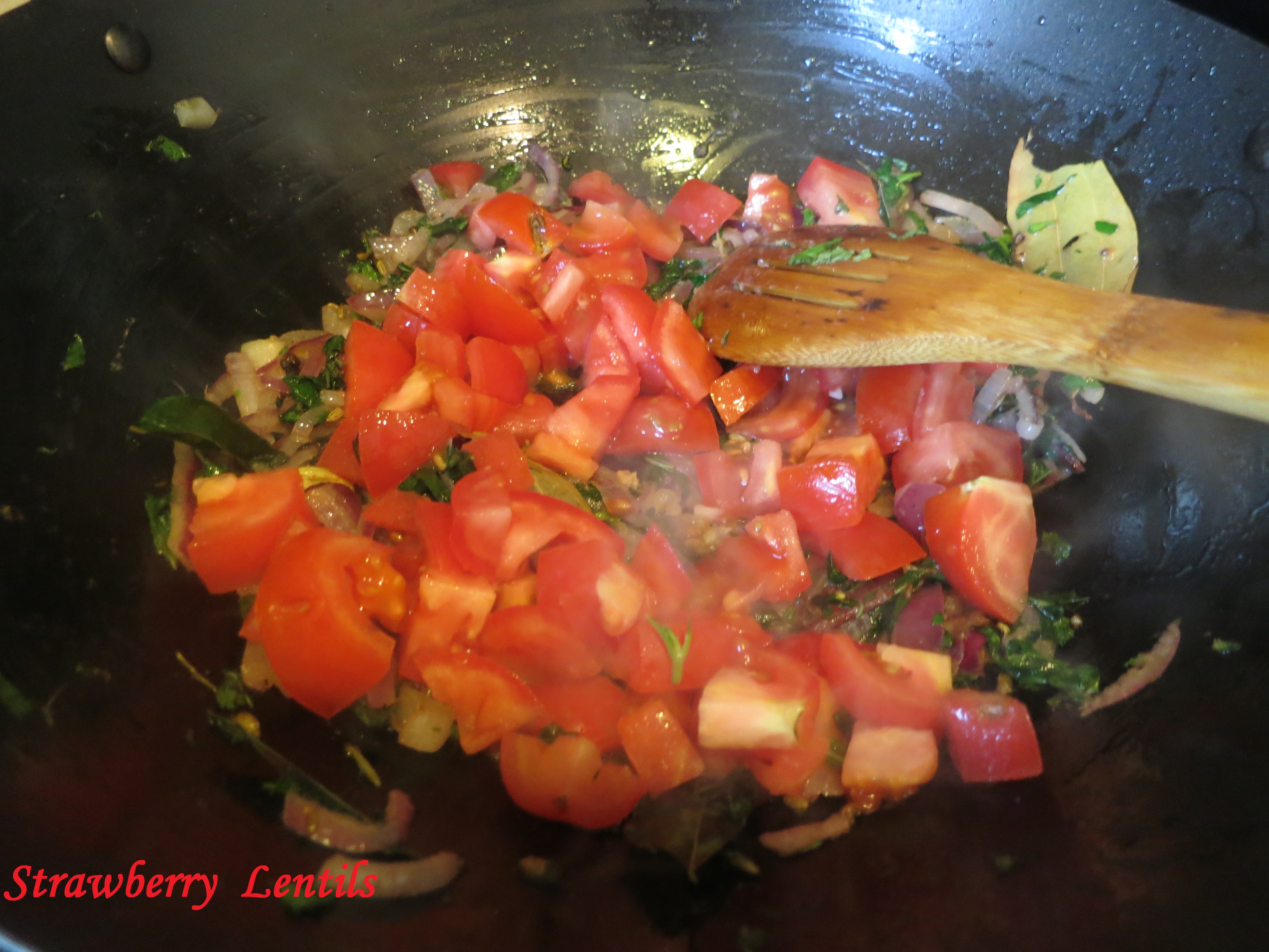 9. Saute mint and add the tomatoes.