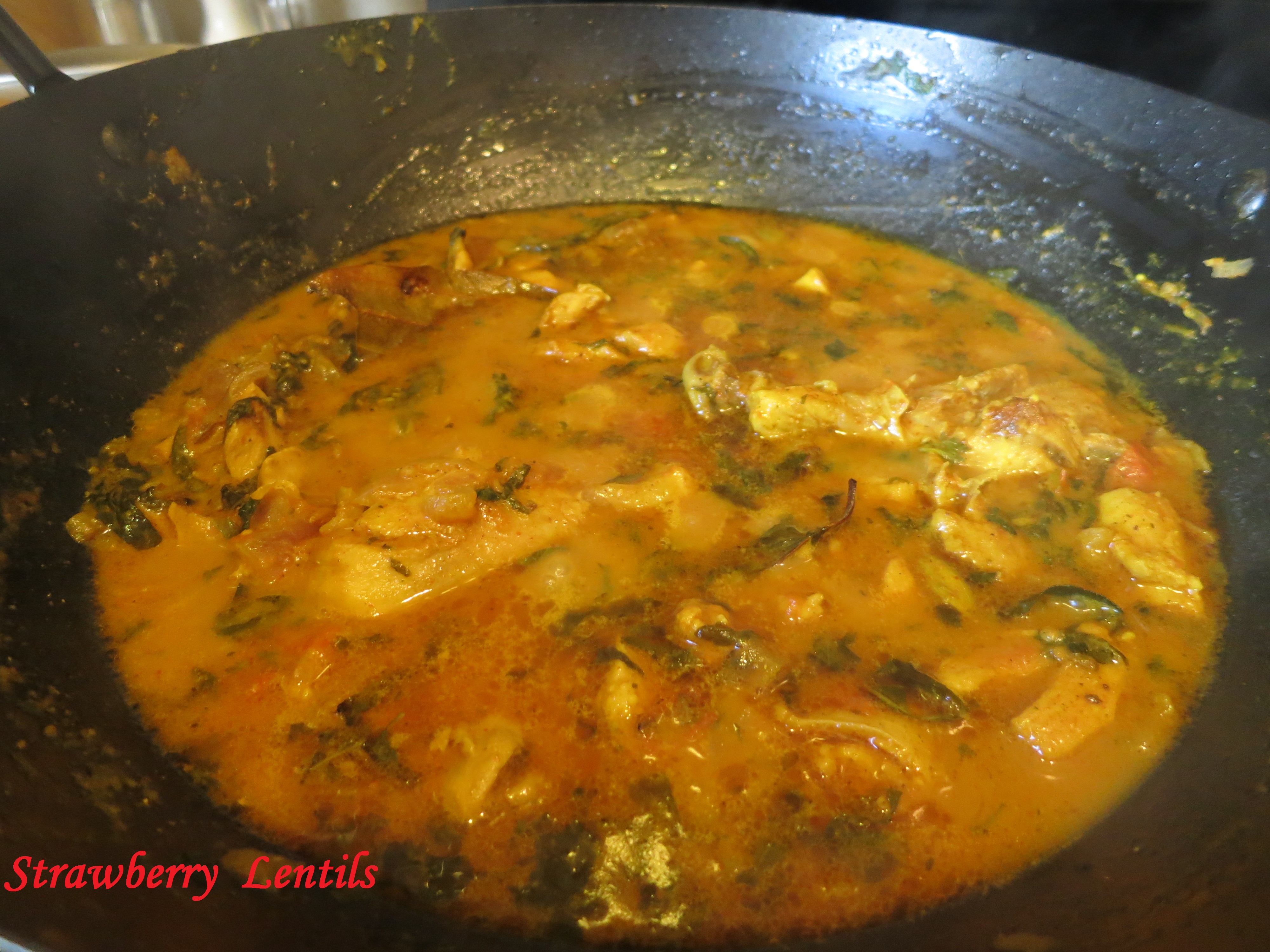 11. Add a cup of plain yogurt. Add salt. Taste the curry and add more chilli powder or salt as needed.