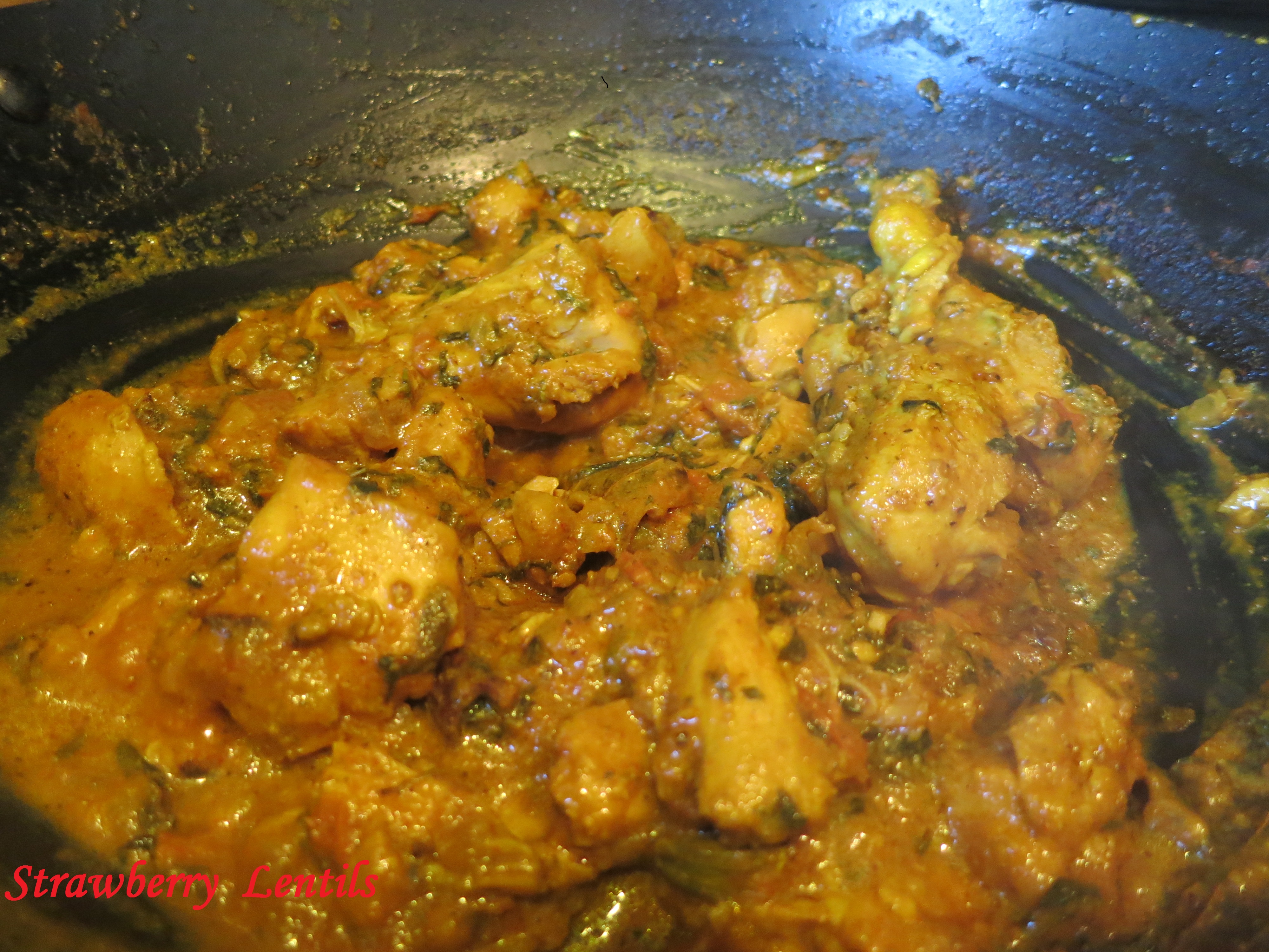 12. Cook until you get a thick gravy. Chicken should not be overdone.