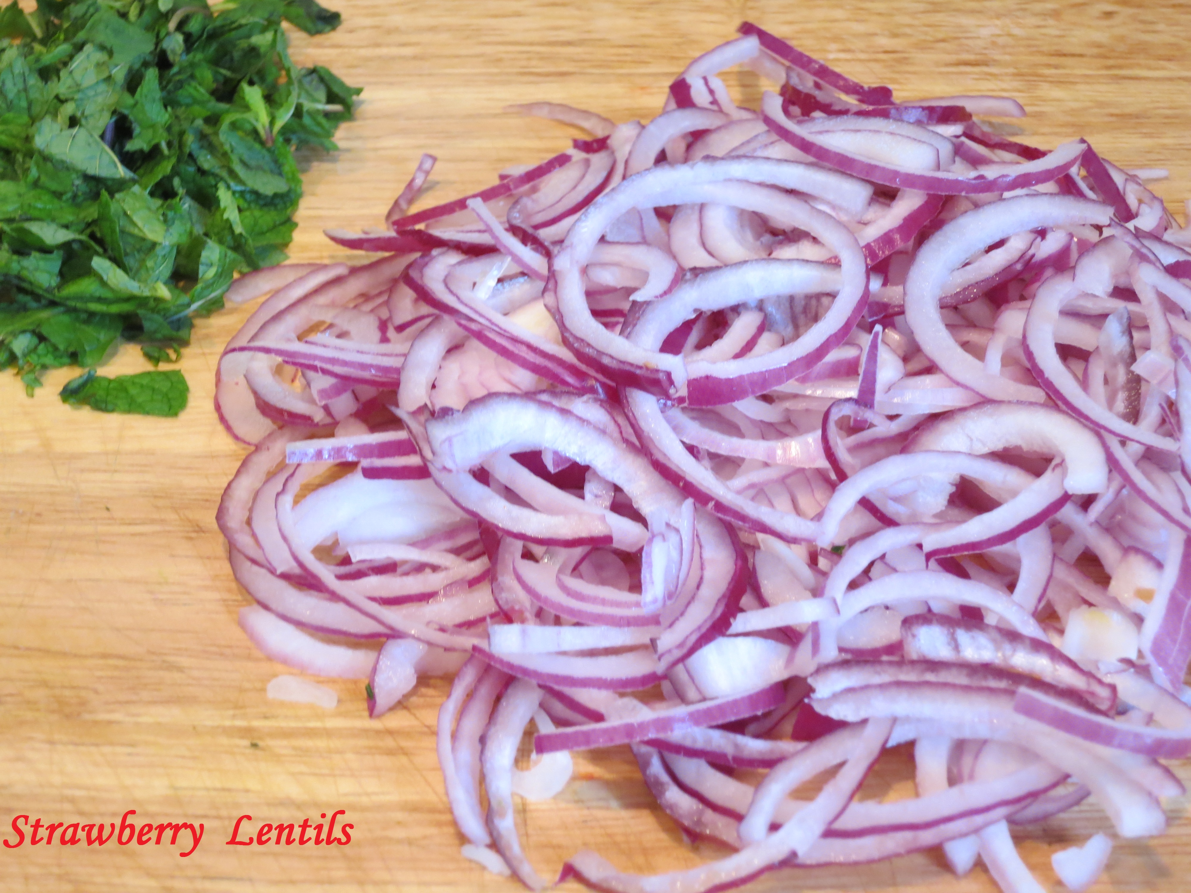 13. Now for the third part of garnish: Thinly sliced onions  and Mint leaves chopped