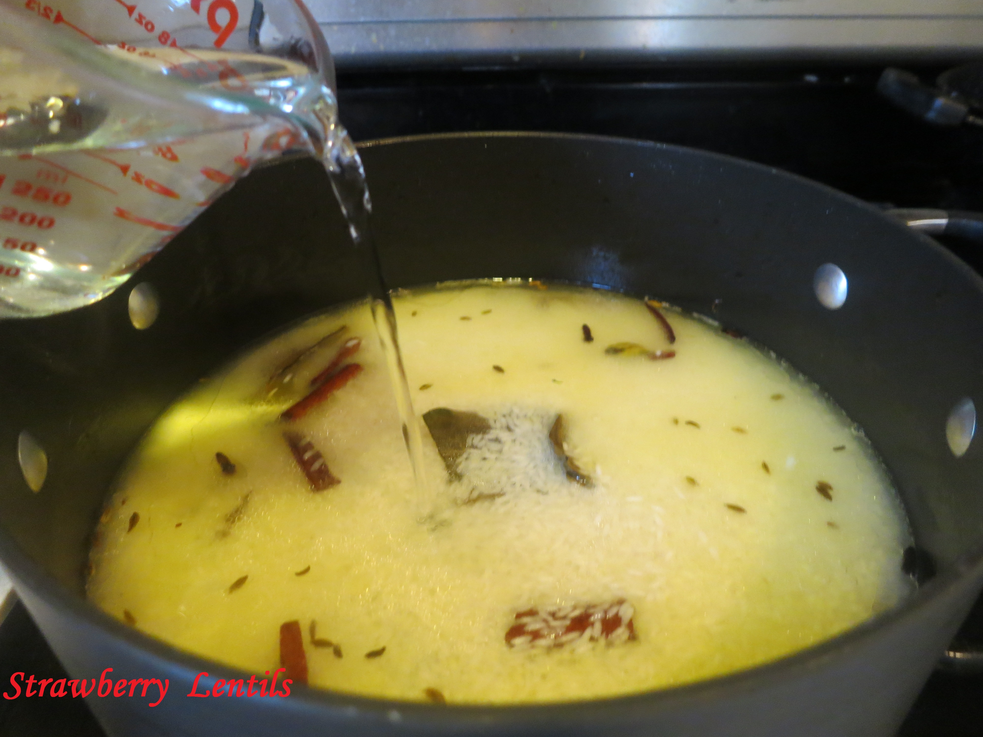 4.Usually I use 2 cups of water for 1 cup of rice for regular cooking. But for biriyani I only use 1.5 cups of water for 1 cup of rice. (You can use coconut milk or chicken stock instead of water).