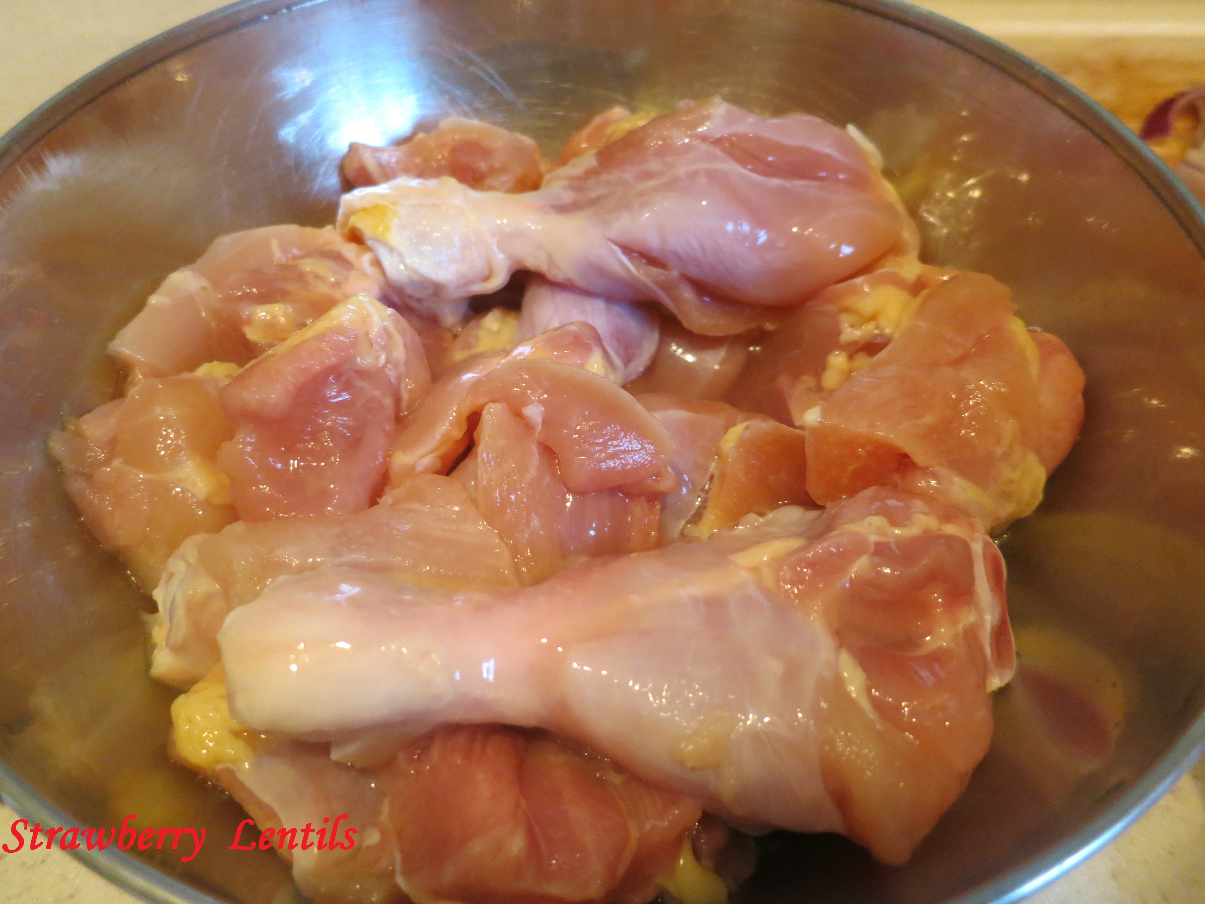 6. Now to make the meat gravy : Cut and clean chicken pieces.