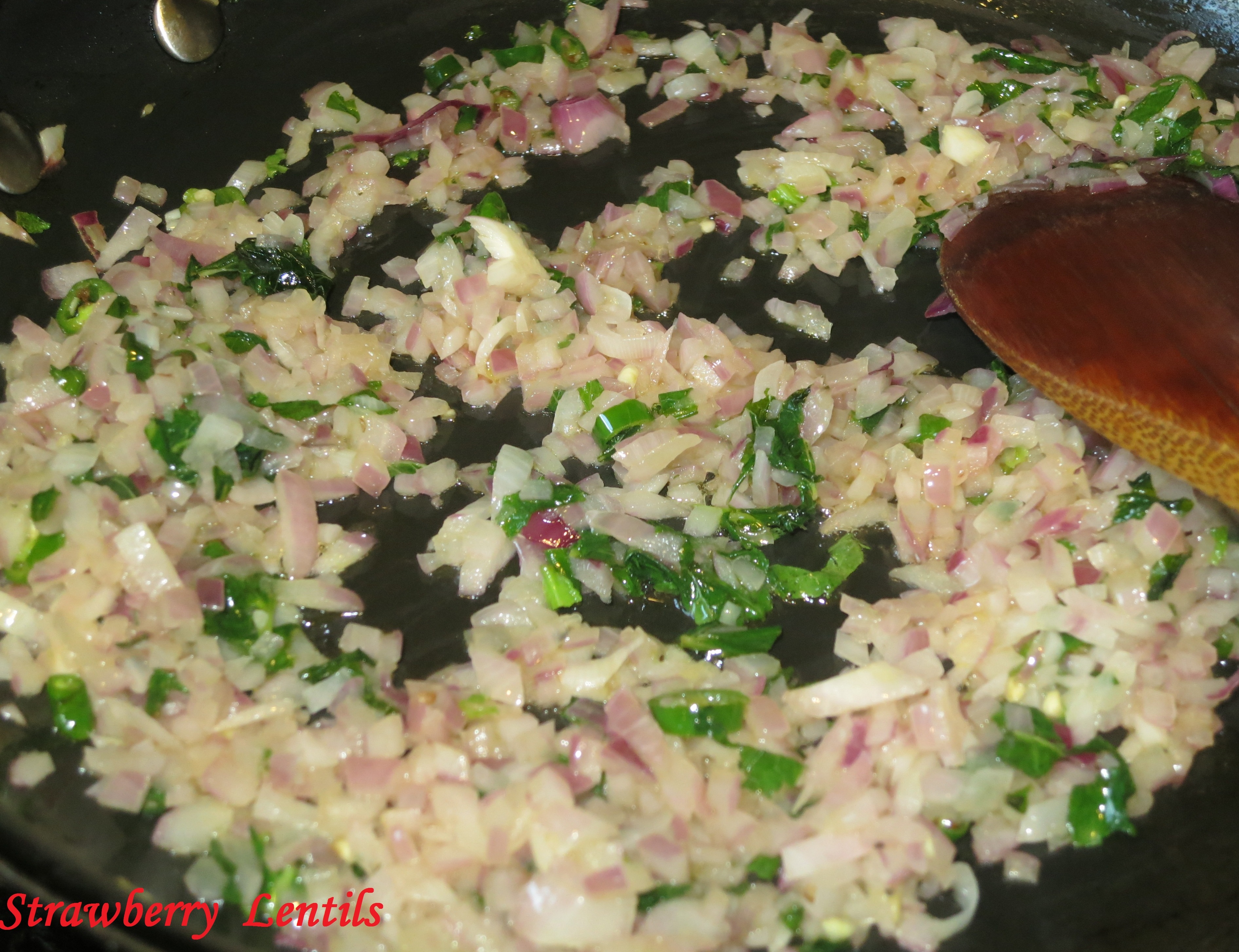 Heat 2 tsp of oil and sauté the green chilles, mint and onions. Also add a tsp of ginger garlic paste.Image