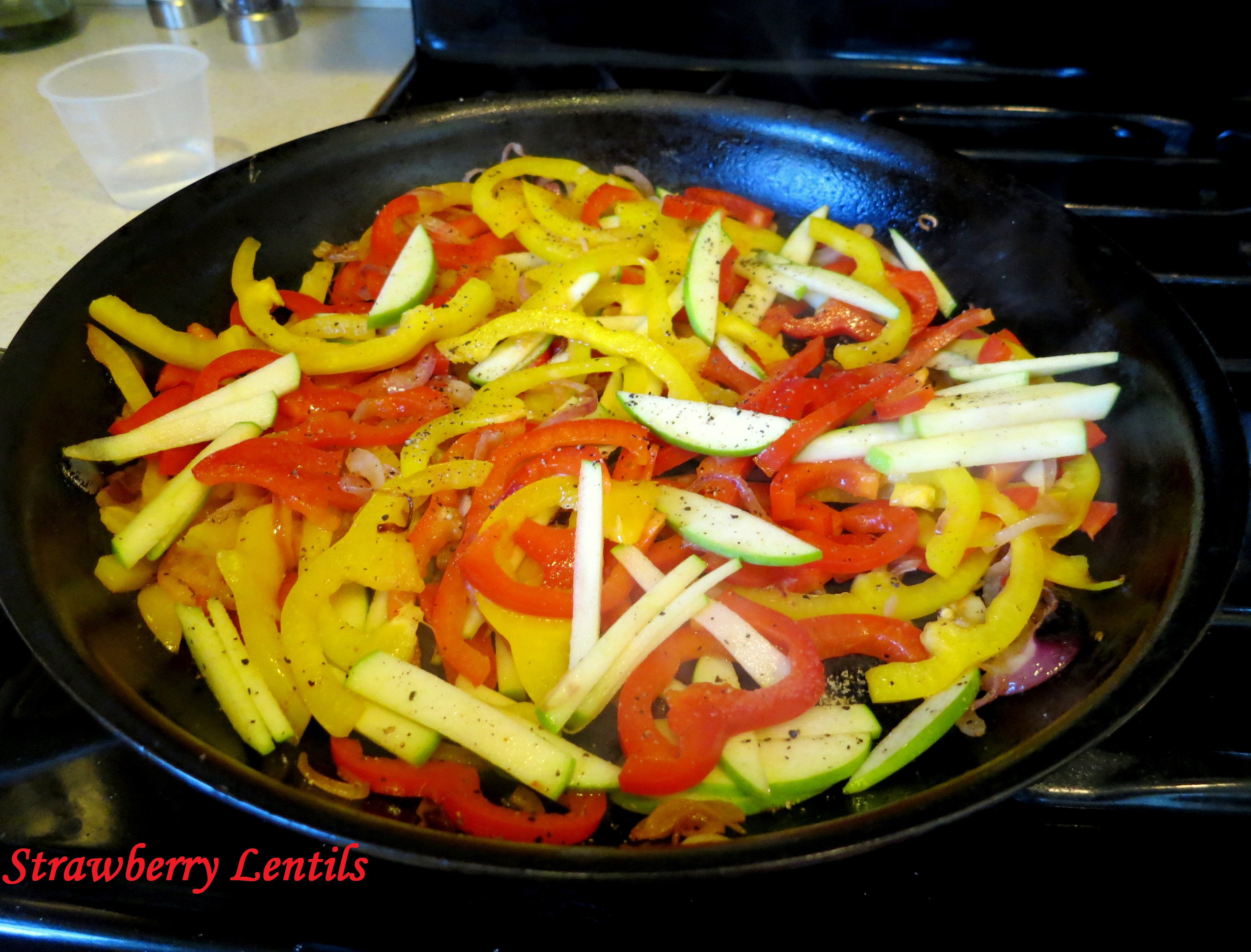 Add the green apples and add salt and pepper.Image