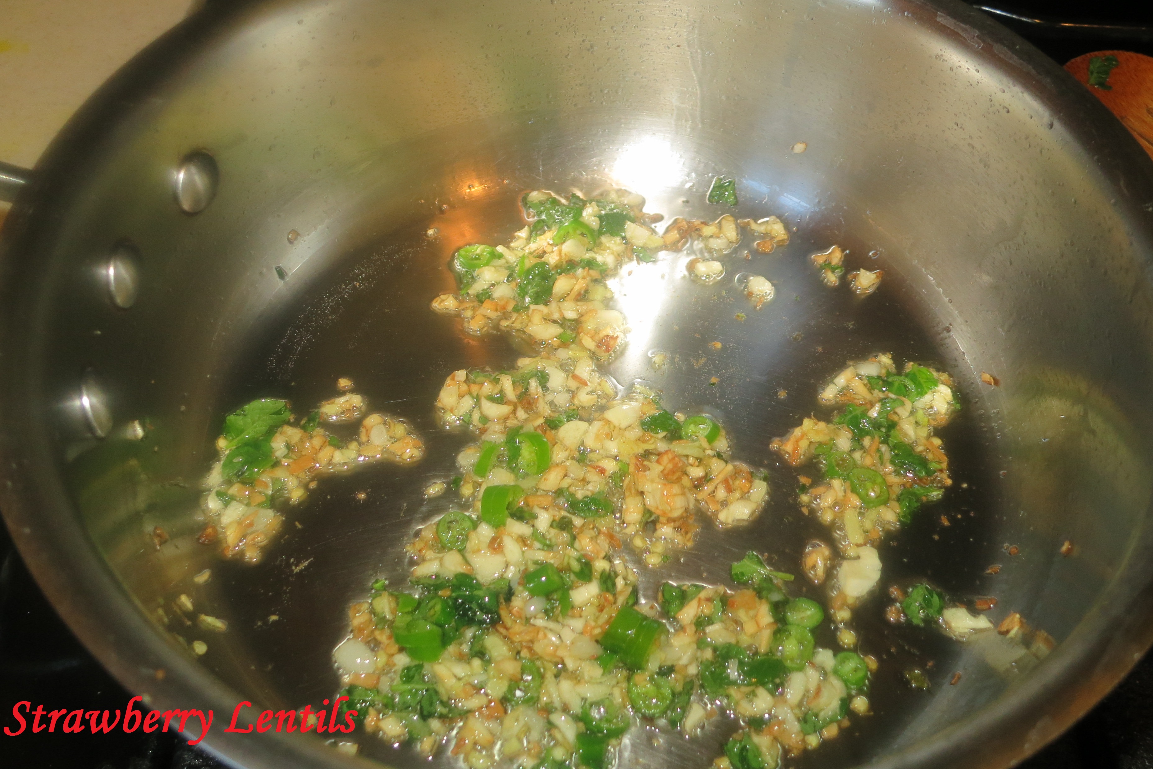 Saute the ginger, garlic, mint and chillies. Image