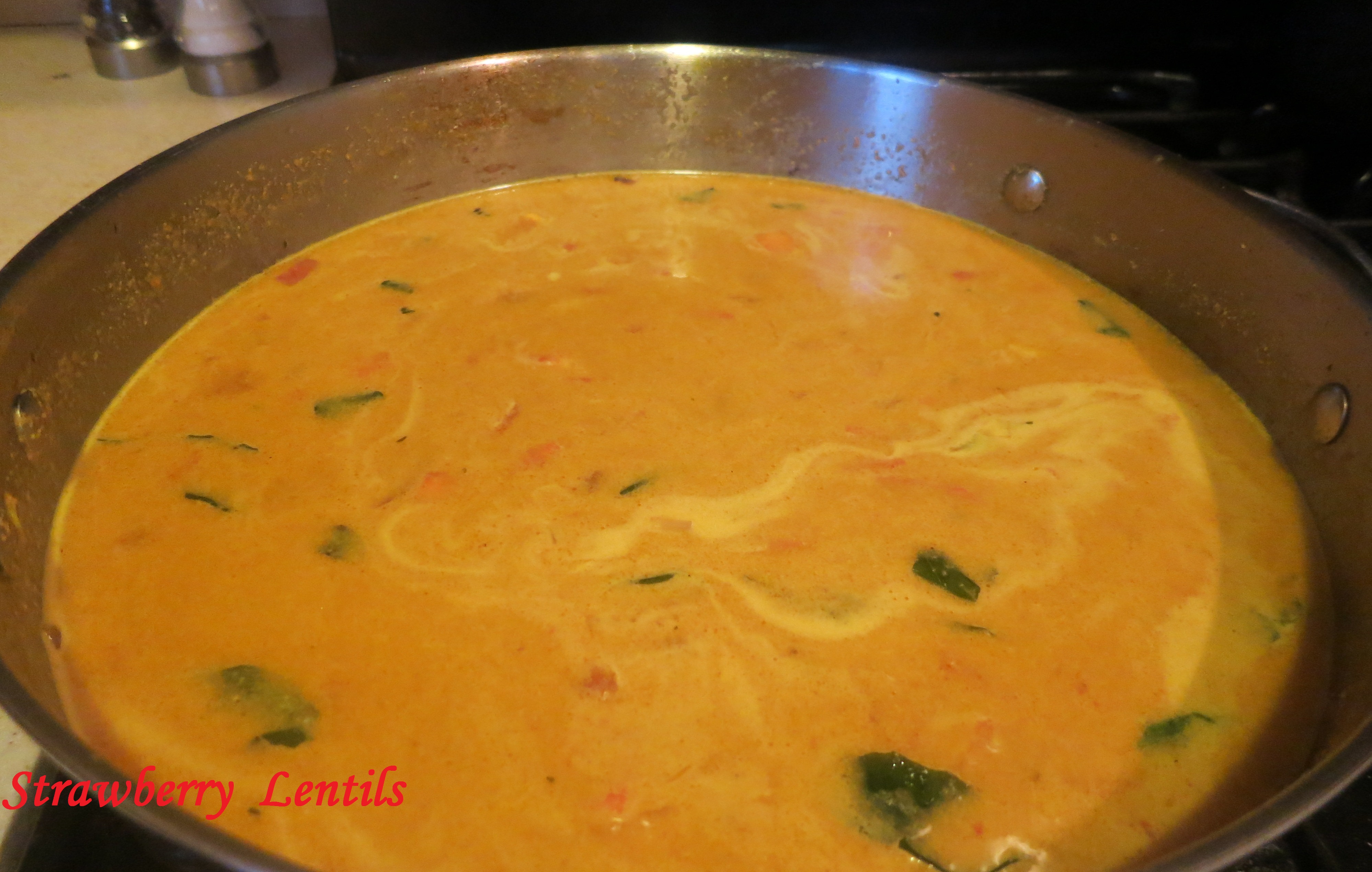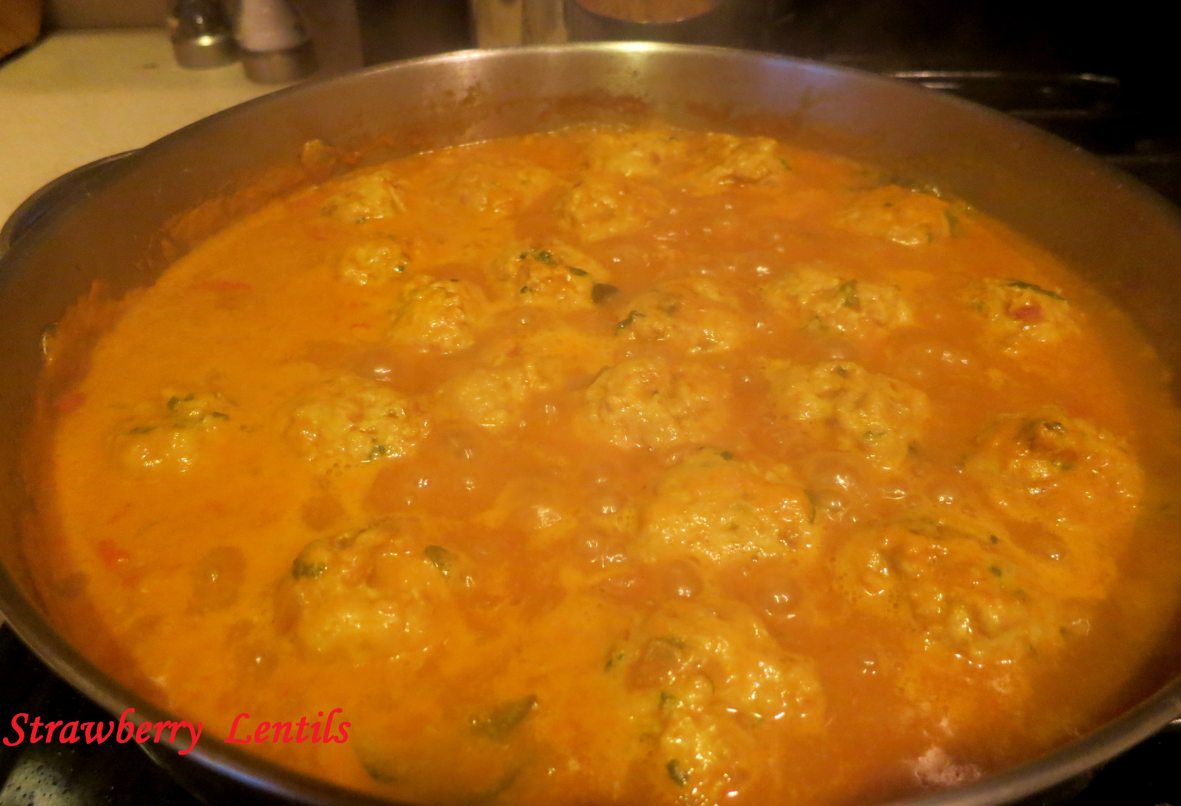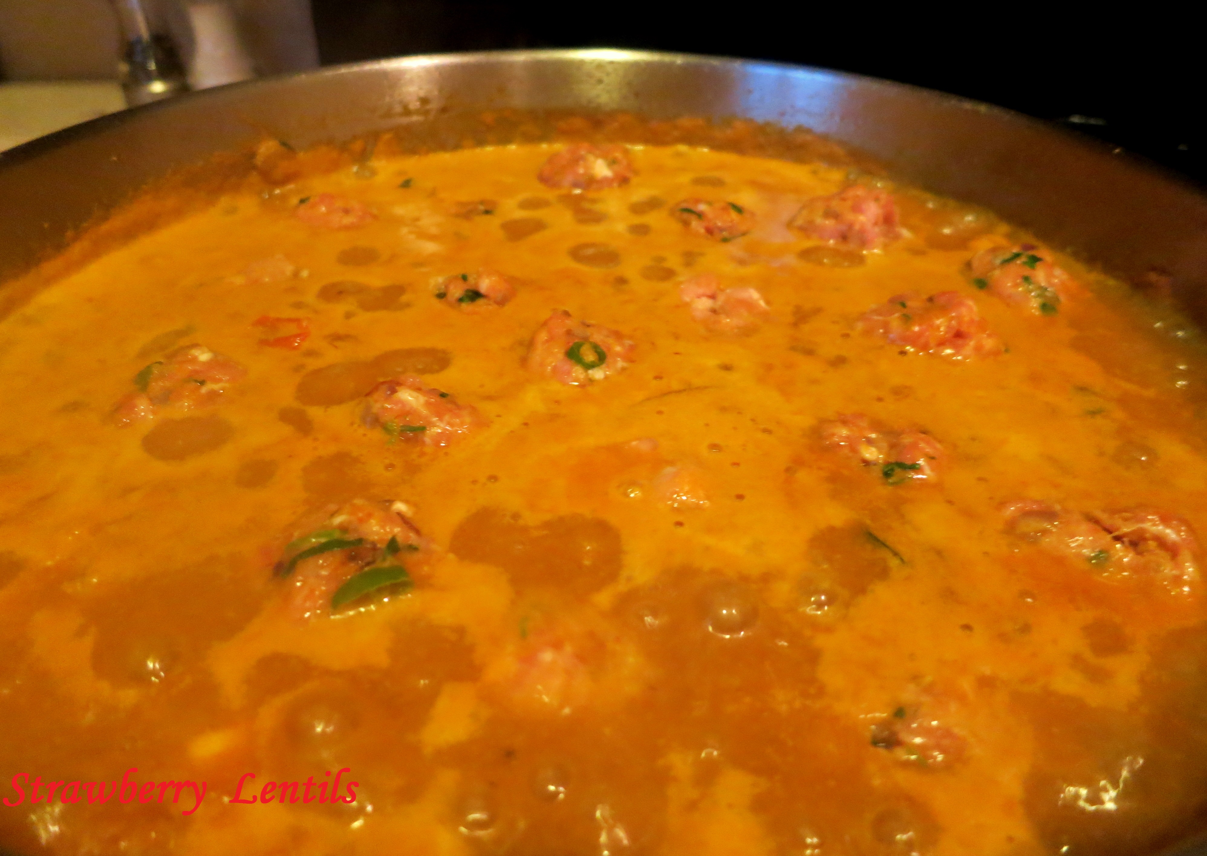 Once you have placed all the kolas in the curry, reduce the heat, cover and cook until the kolas are done..