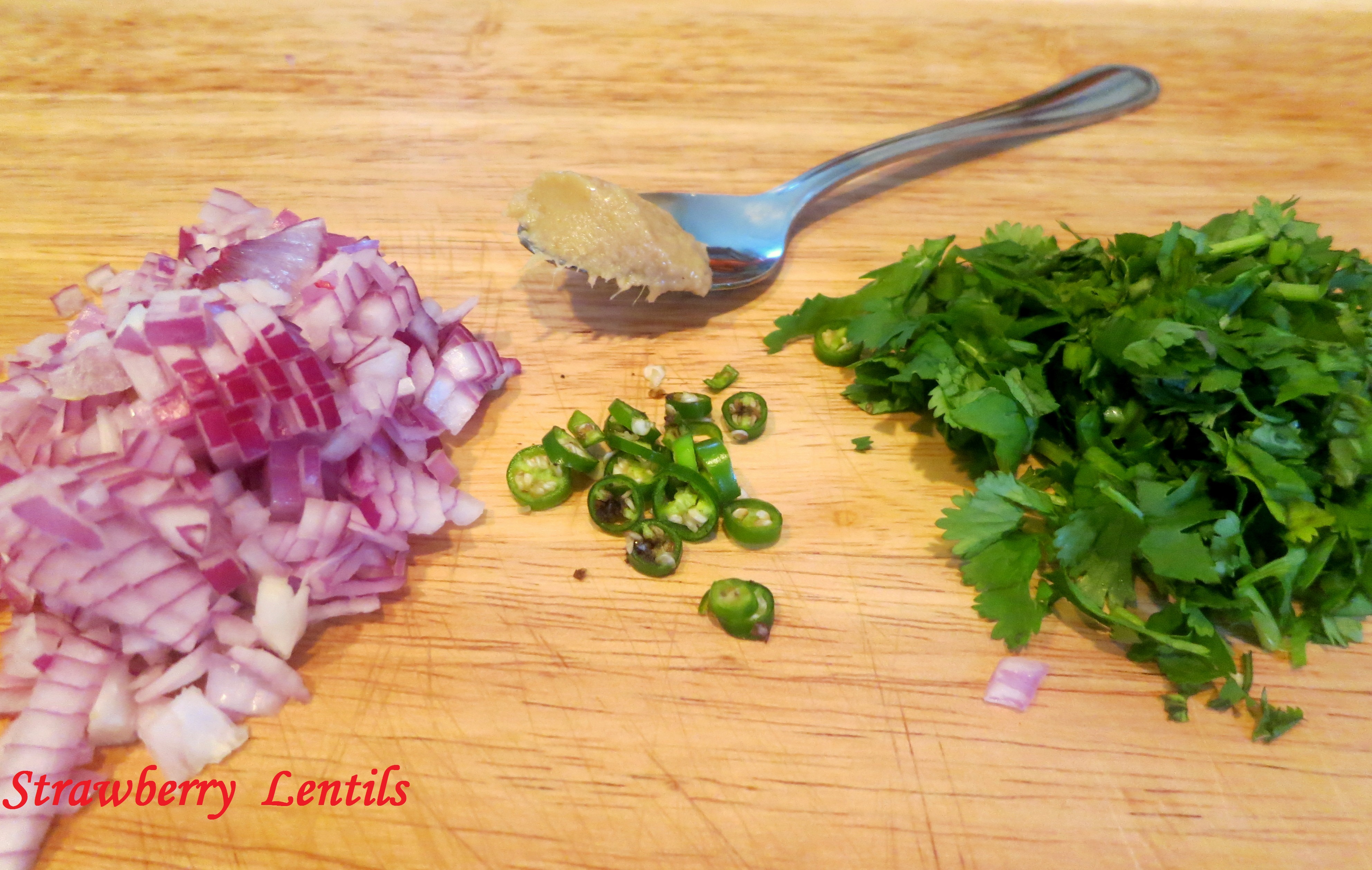 chopped onions, chillies, coriander leaves and ginger garlic paste