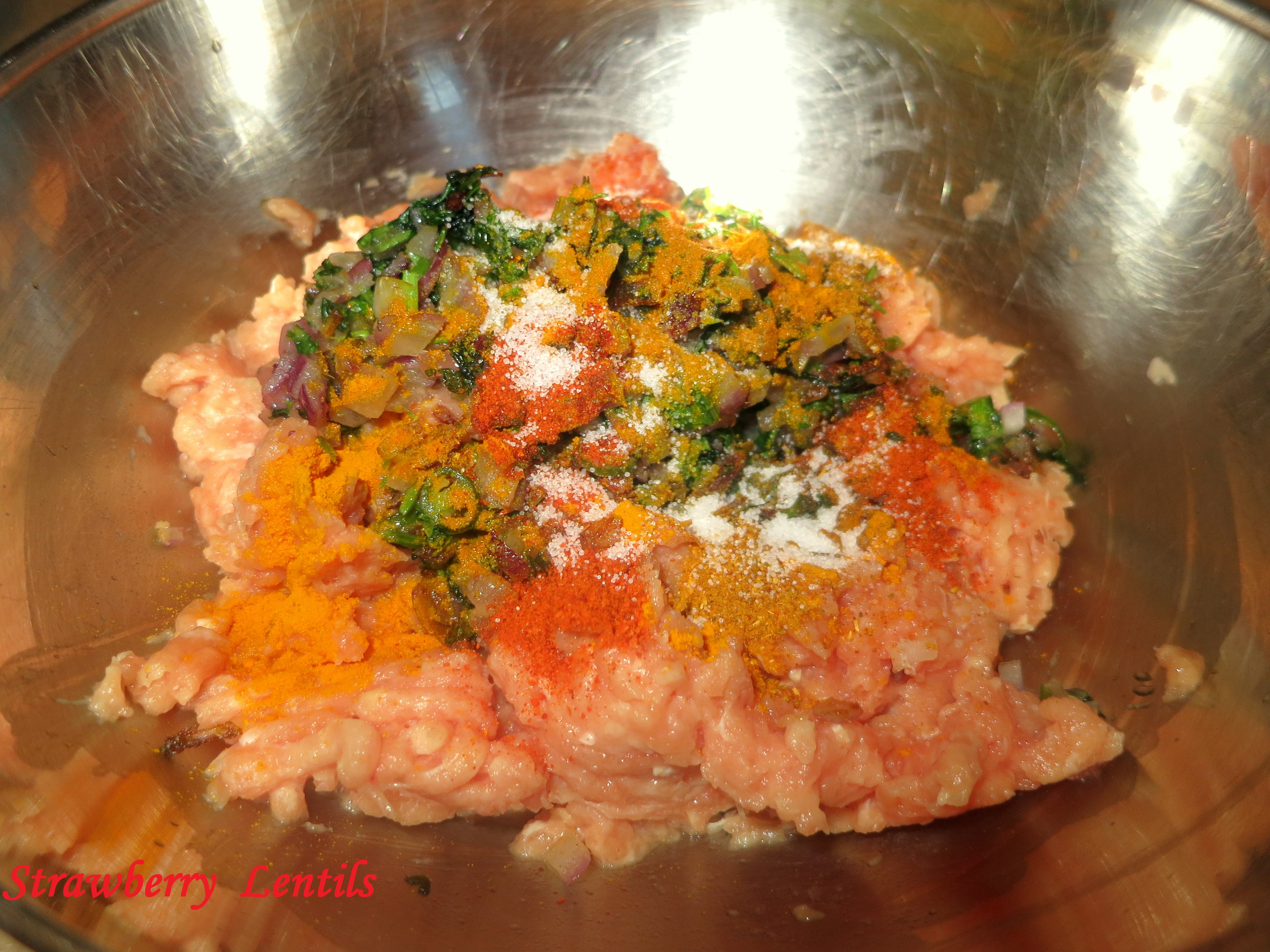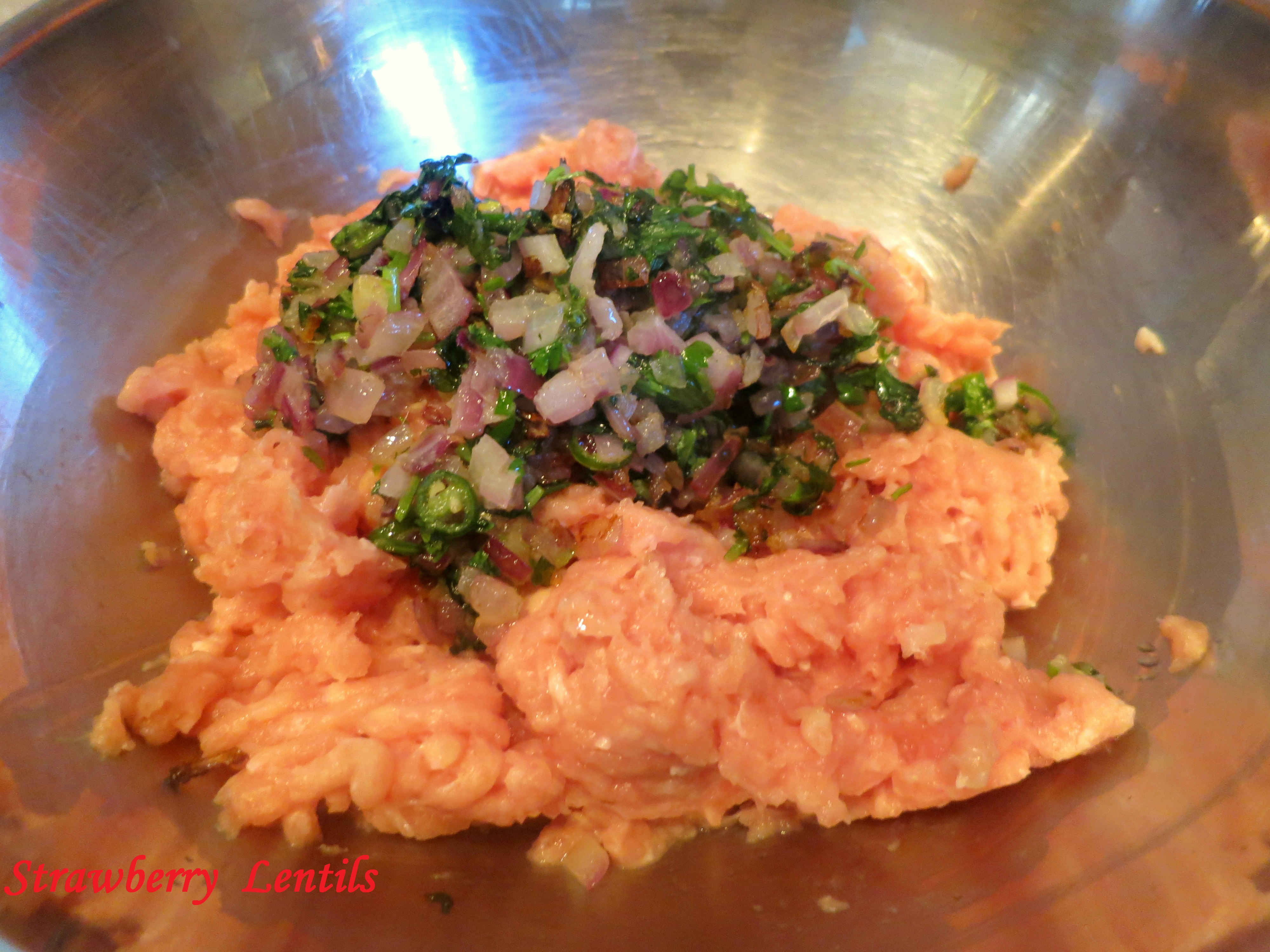 Minced chicken (If you don’t get minced chicken, just grind boneless chicken without adding water).