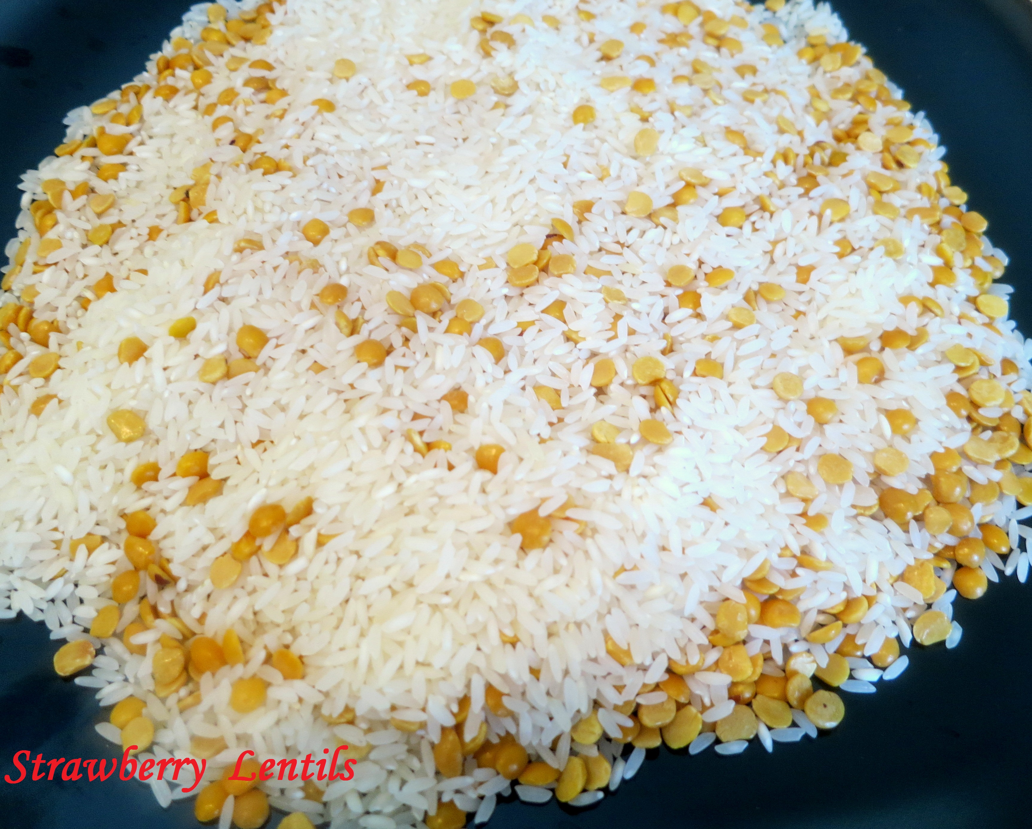 Cook the dhal and rice together in a pressure cooker with 6 cups of water , some salt and 2 tsp of oil. You can cook them in a regular pot, add enough water so that cooked rice-dhal has a soft texture.