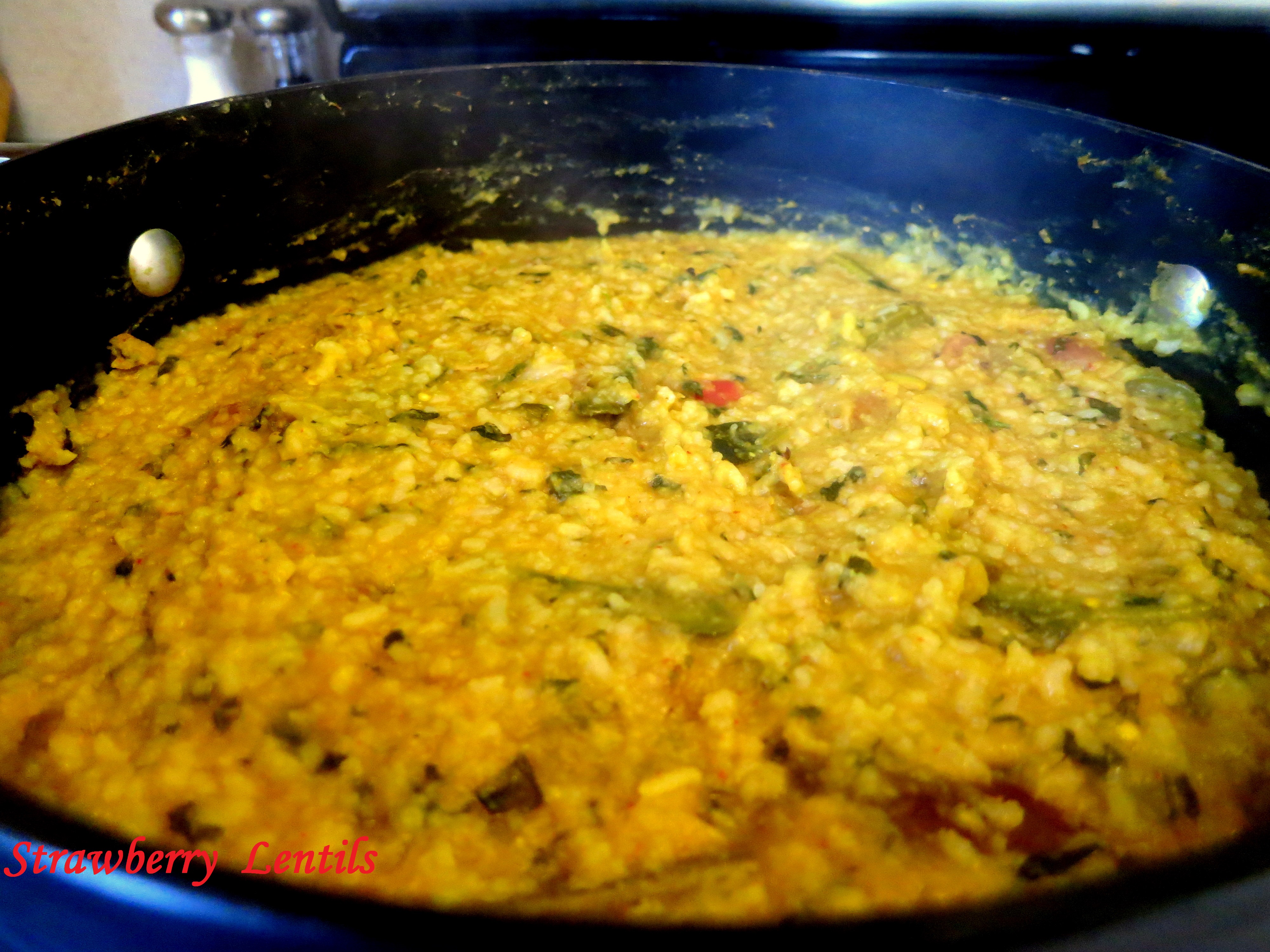 Tastes good when its hot and tastes even better at room temperature. This is a great all-in-one dish with rice, lentils and vegetables and the combination of red chillies, cumin and garlic add layers of flavor. Back in my hometown, I have even tasted this dish with shrimp in it. You can try that too !