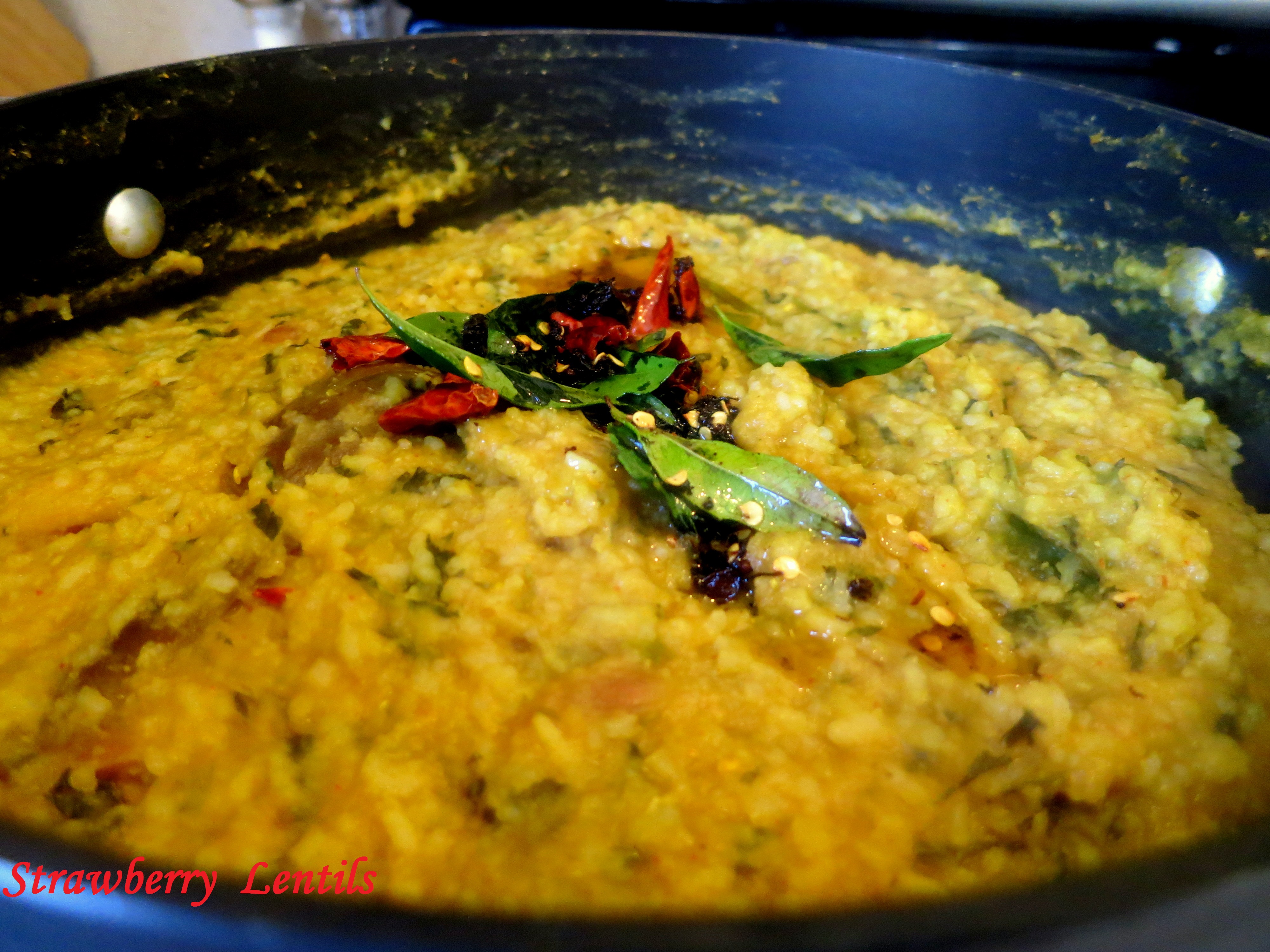Add the cooked rice and dhal to the curry and mix well. Simmer for 15 mins, making sure the rice is not getting dry.