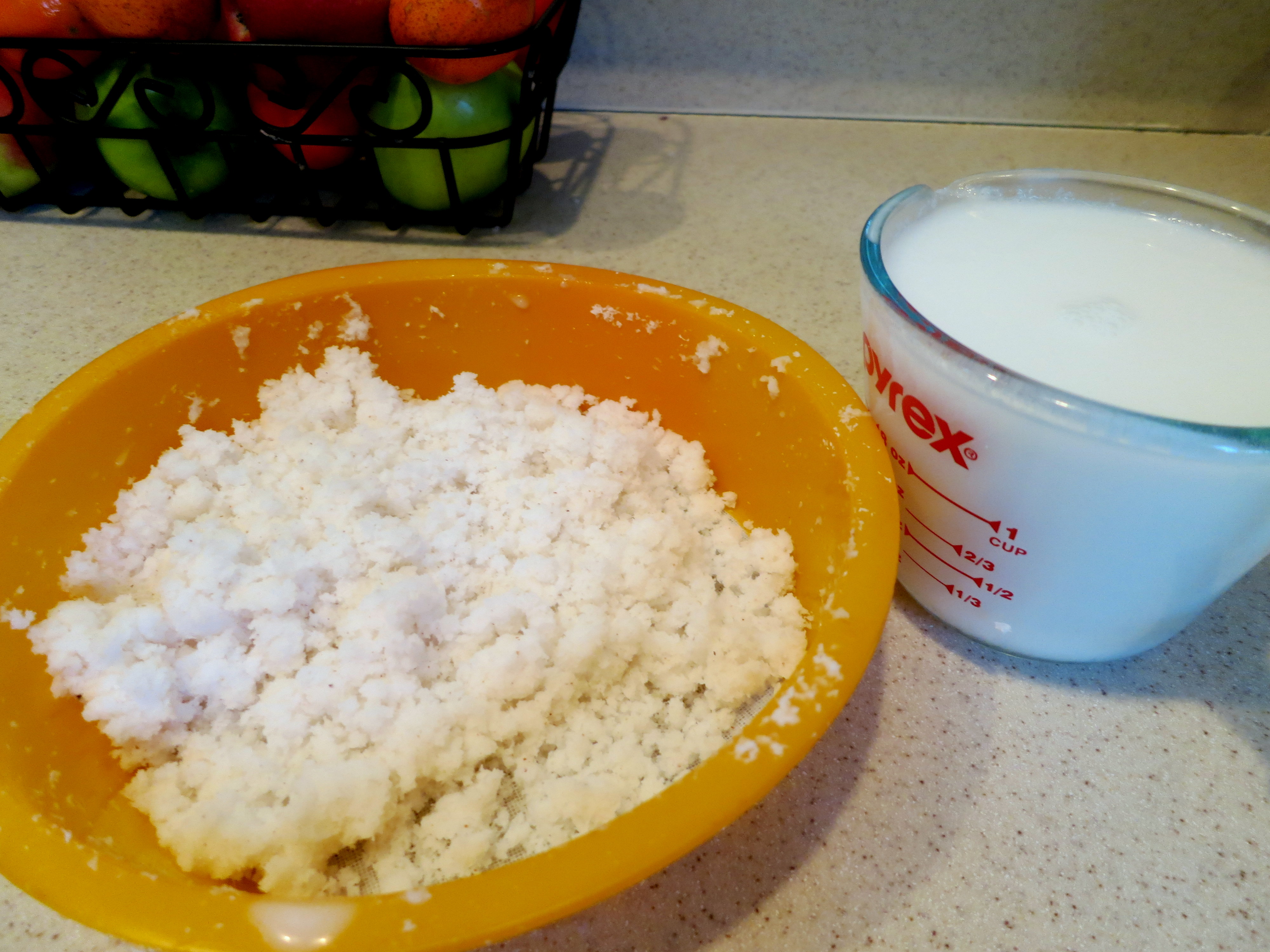 Return the coconut to the blender and grind with 1.5 cups of water, squeeze the milk out. This will be the second milk (with the consistency of 2% milk). If you are using cans, mix 3/4 cups of coconut milk with 3/4 cups of water.