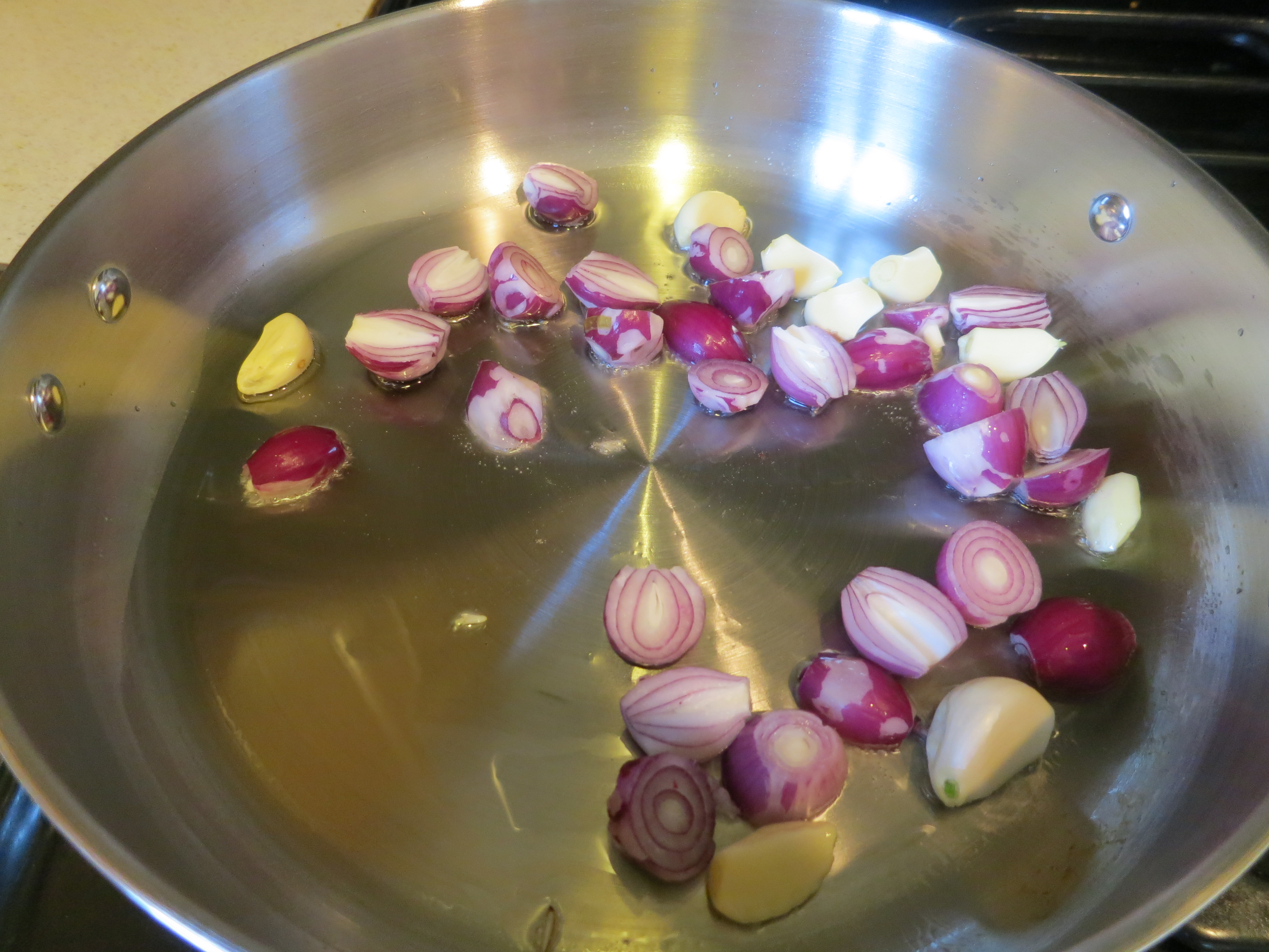 Add 2 tsp of oil to the pan and sauté the onions and garlic.