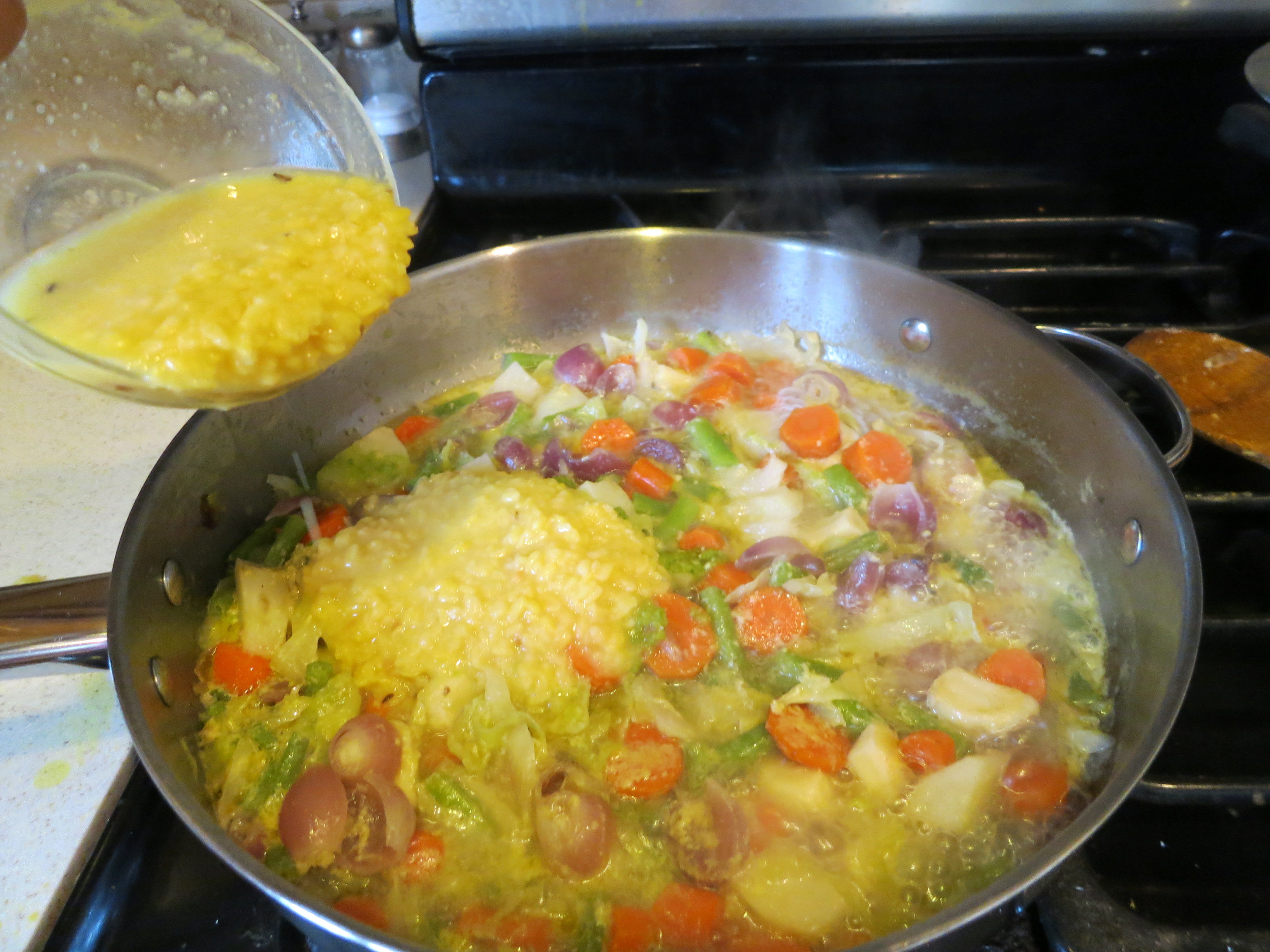 Add the “second” coconut milk and also a pinch of salt. cook until the vegetables are cooked well and the stew will thicken because of the dhal.