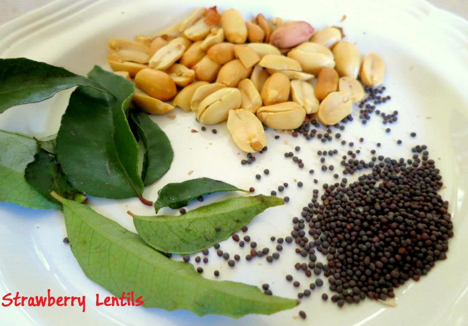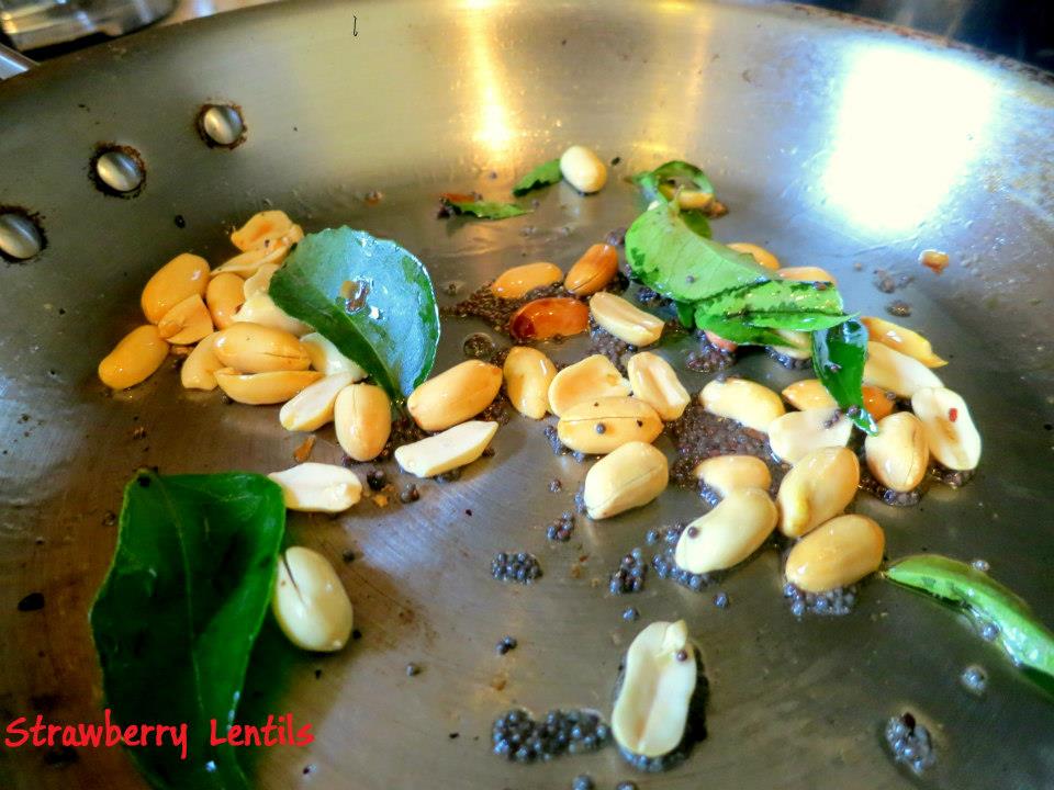 • For the final seasoning  you need curry leaves, peanuts and mustard seeds.