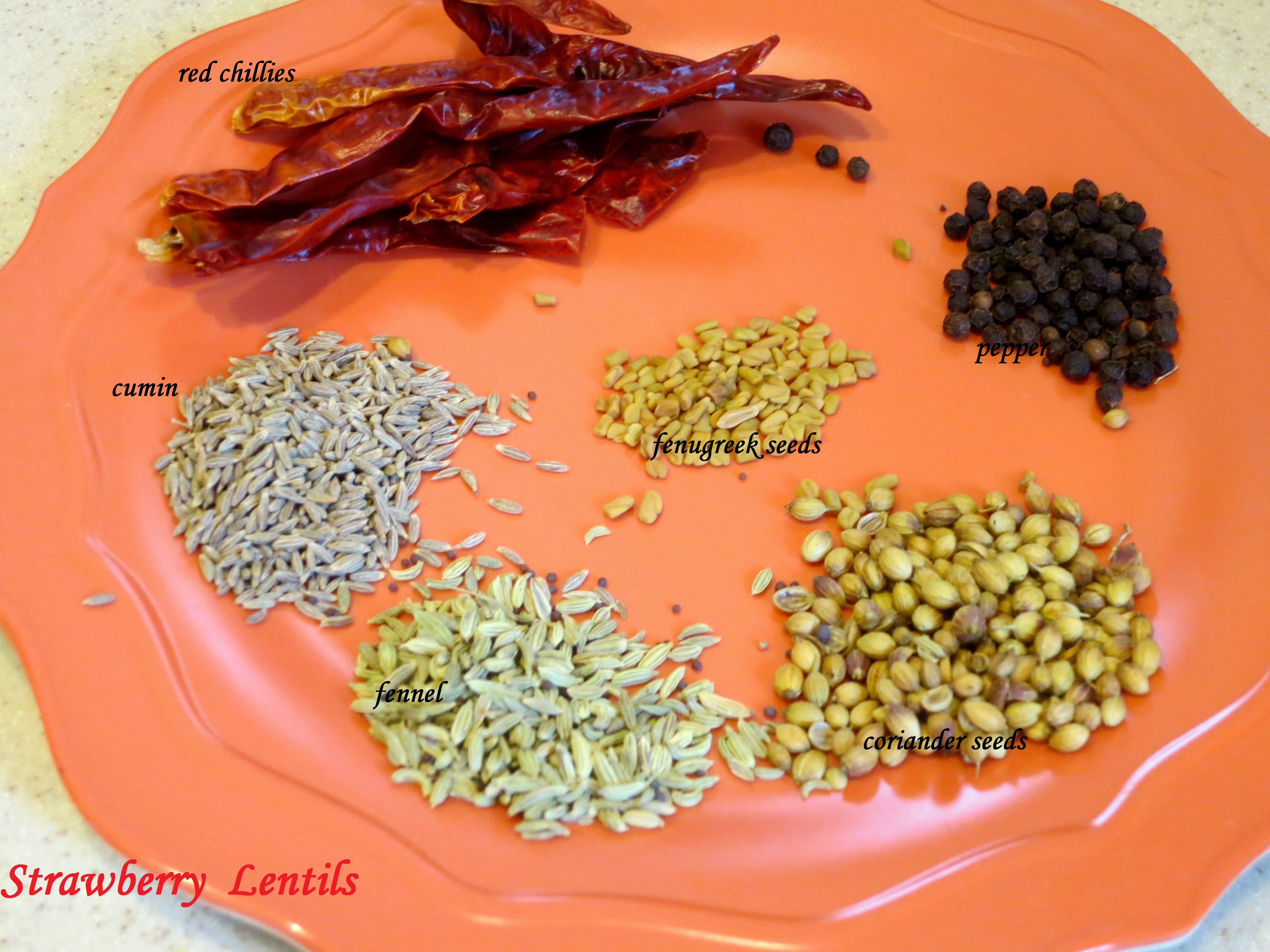 - First lets make the kadai masala. Its a blend of the dry spices. Traditionally ‘Kasoori methi’ (dried fenugreek leaves) are used. I do not have it, so I replaced it with fenugreek seeds.