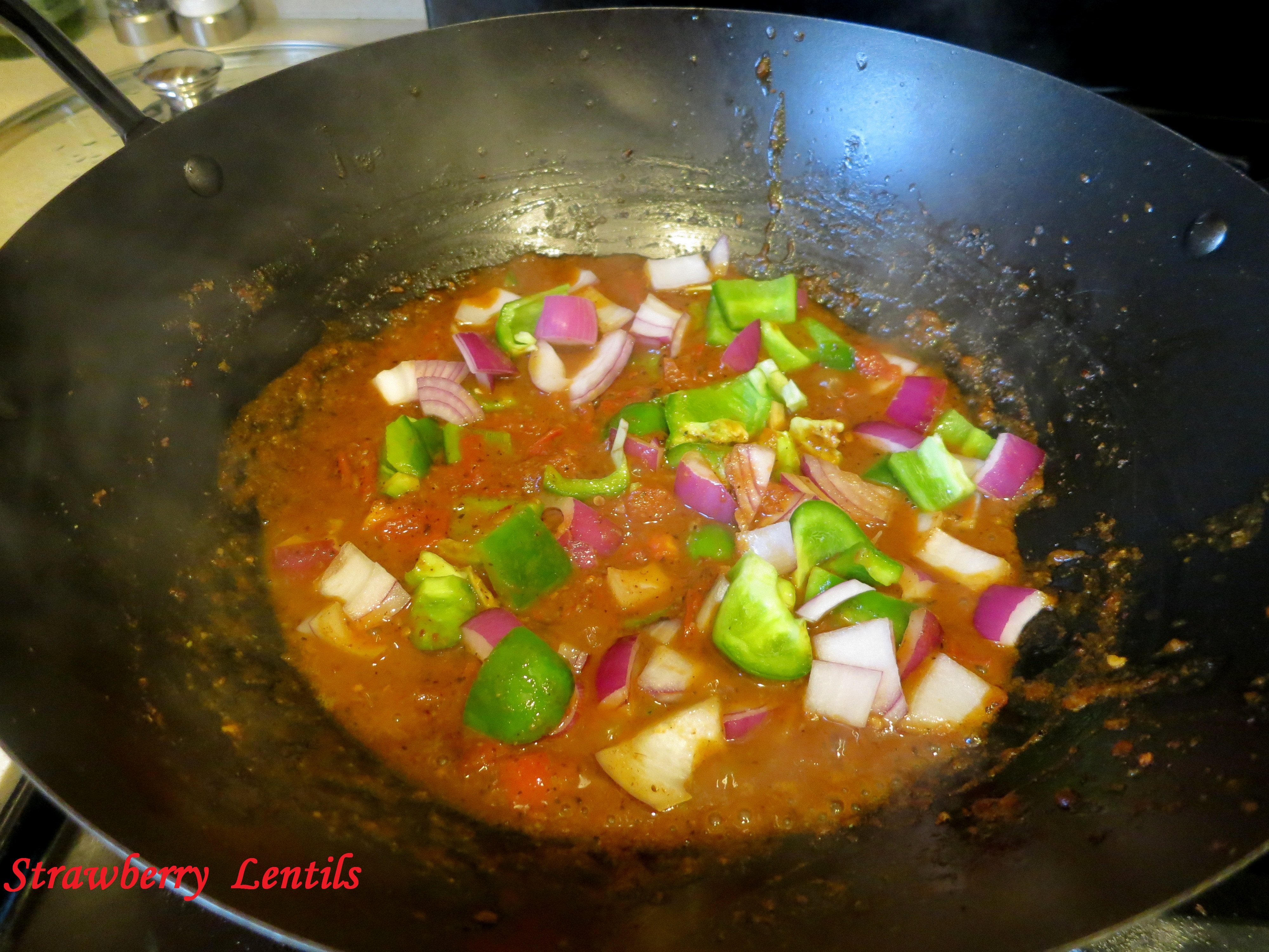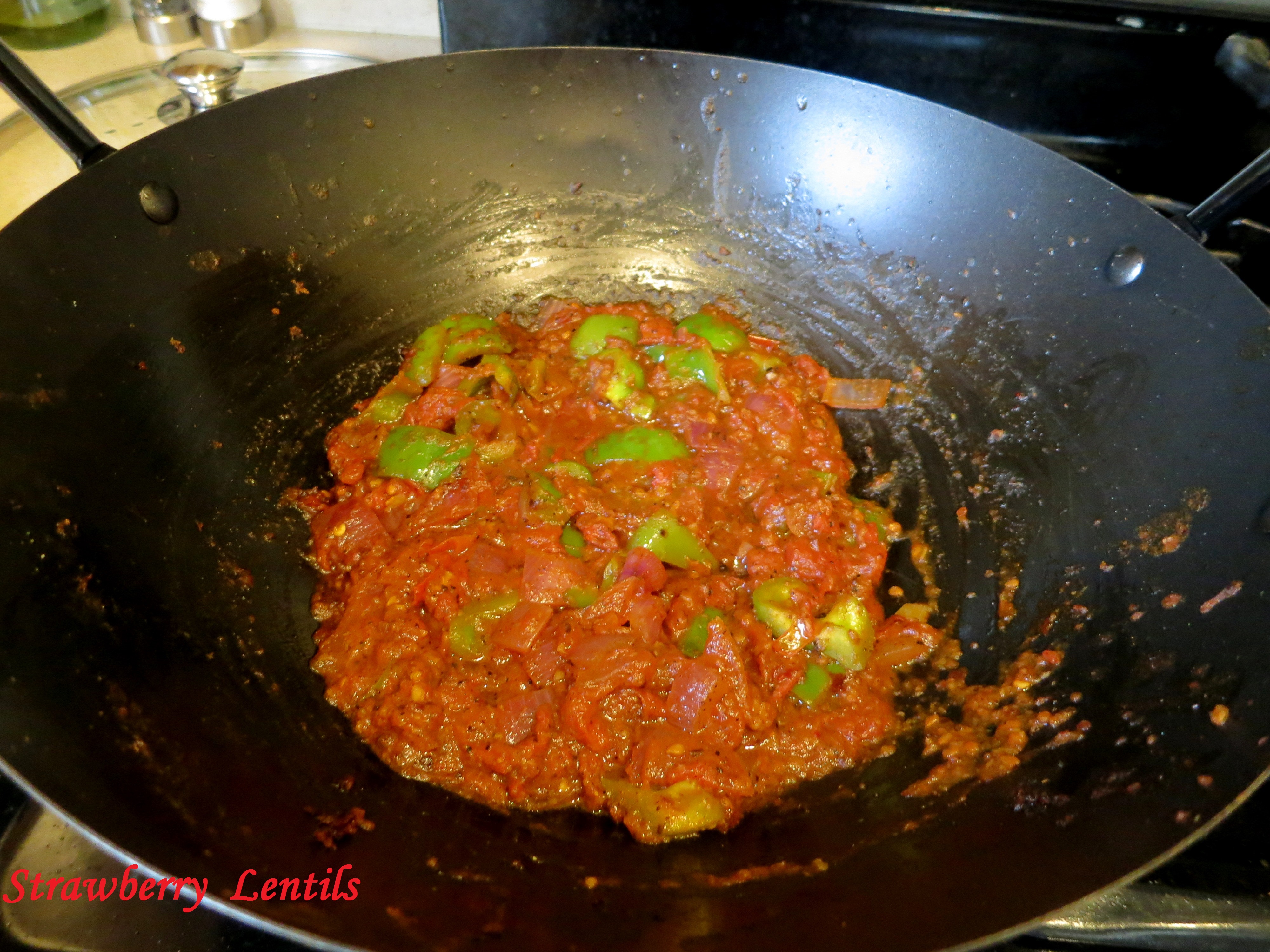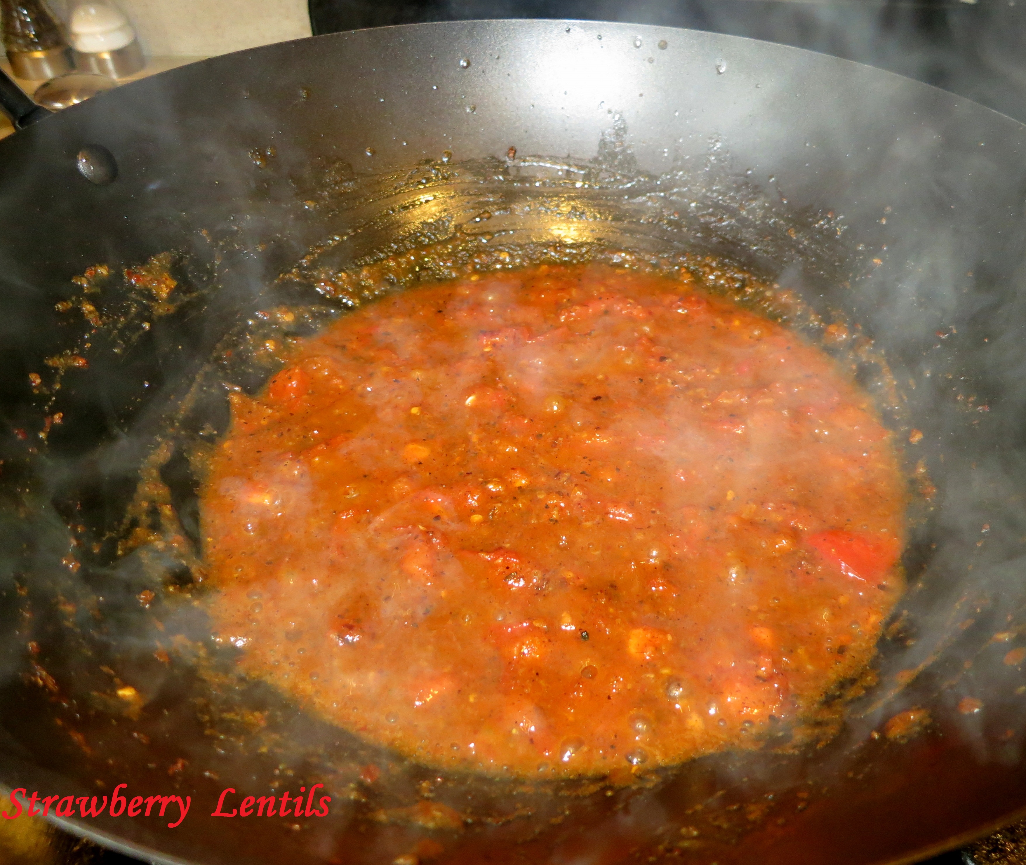 - By now, the gravy should have reduced. As with all tomato based gravies, as we cook them longer and slower the color becomes rich. I am making this as a side for rice, so I allowed my gravy to reduce a lot, you can make it as loose as you prefer.