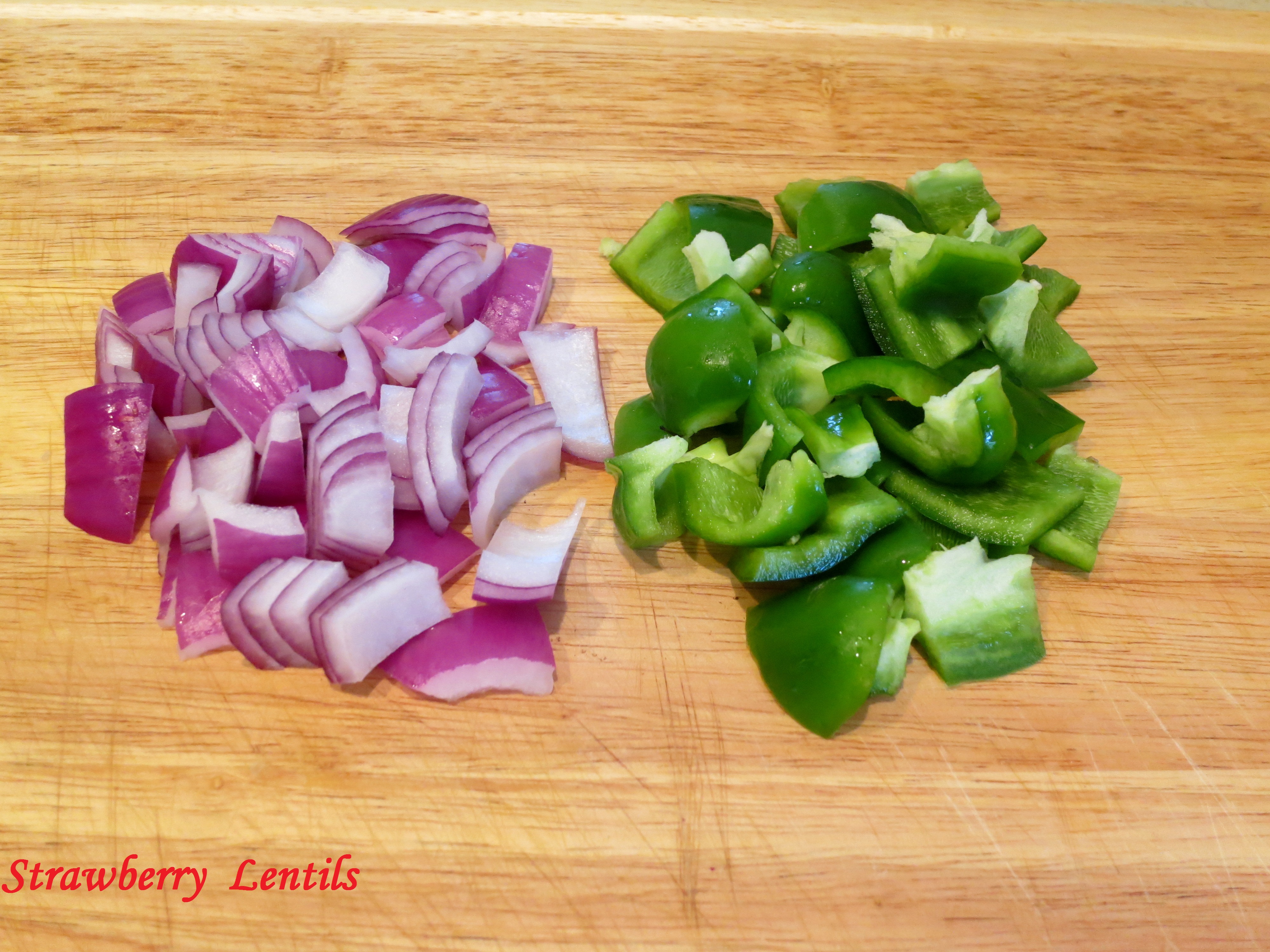 - Add the onions and green peppers to the gravy. I know it is counter intuitive to add raw onions to the gravy, but for this recipe it works really well. It is important to have the crunch in the finished gravy.