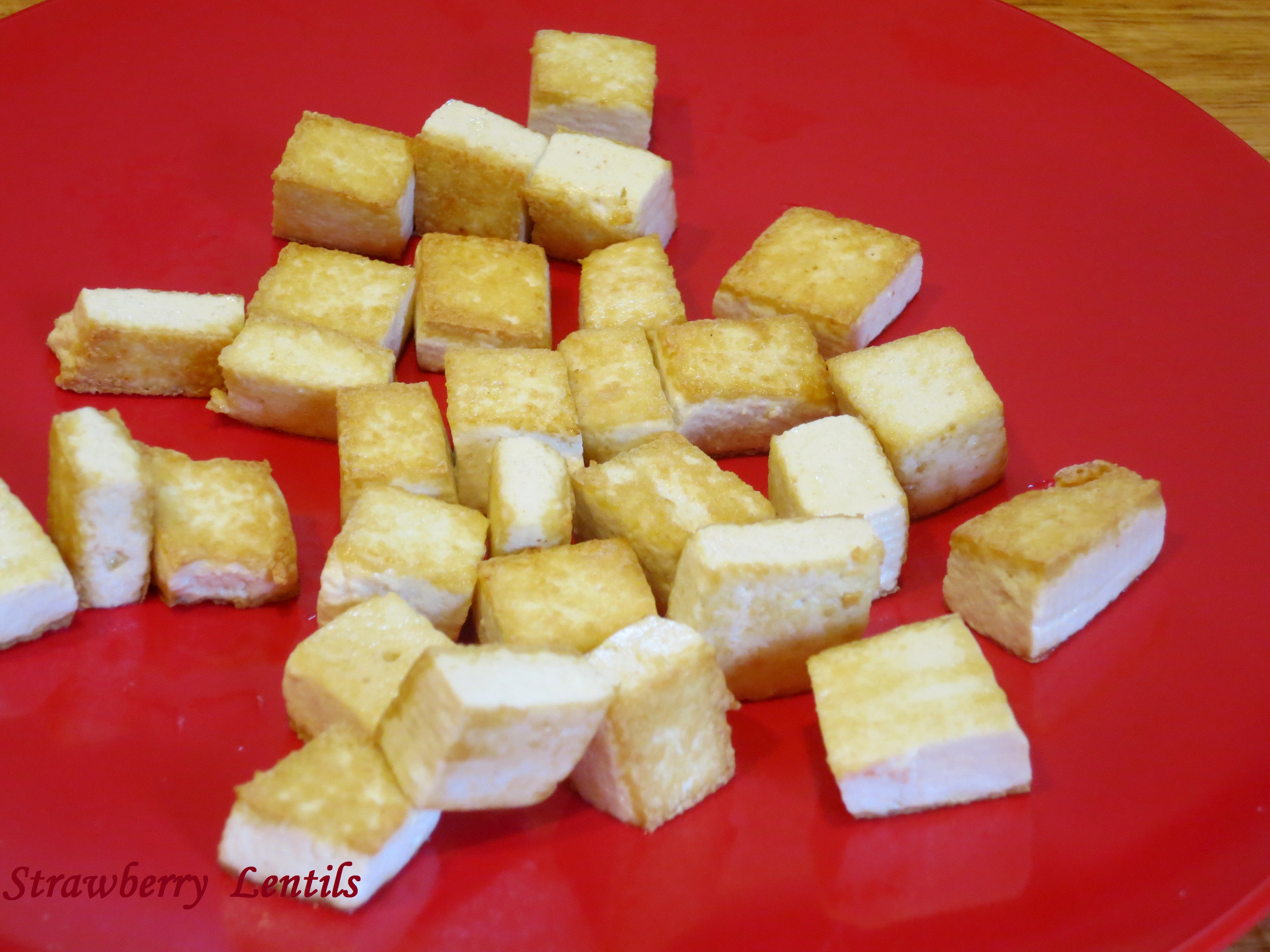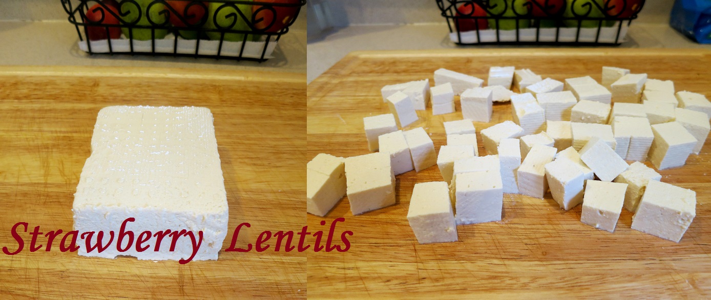- Let the gravy simmer. Meanwhile, we can get the Tofu ready. I am using extra firm Tofu. Cut the Tofu in cubes.