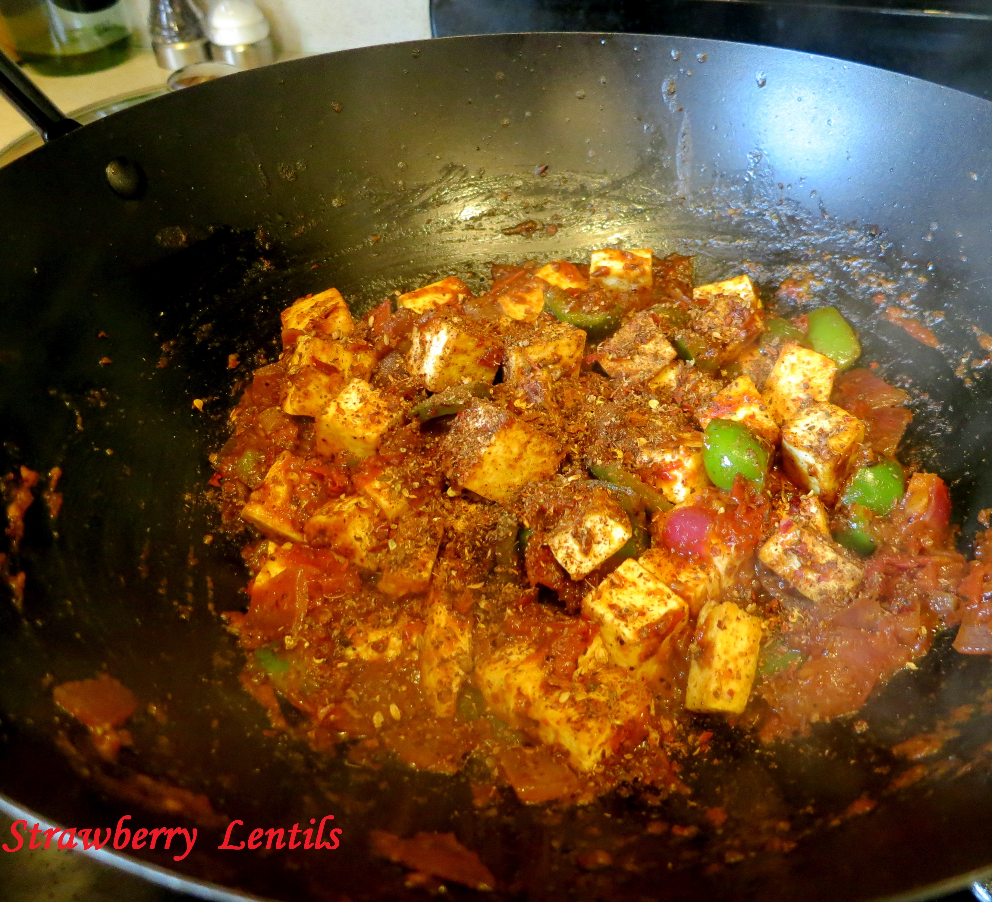 - Finally sprinkle the rest of the kadai masala (dry spice blend) and mix with the tofu and the gravy.