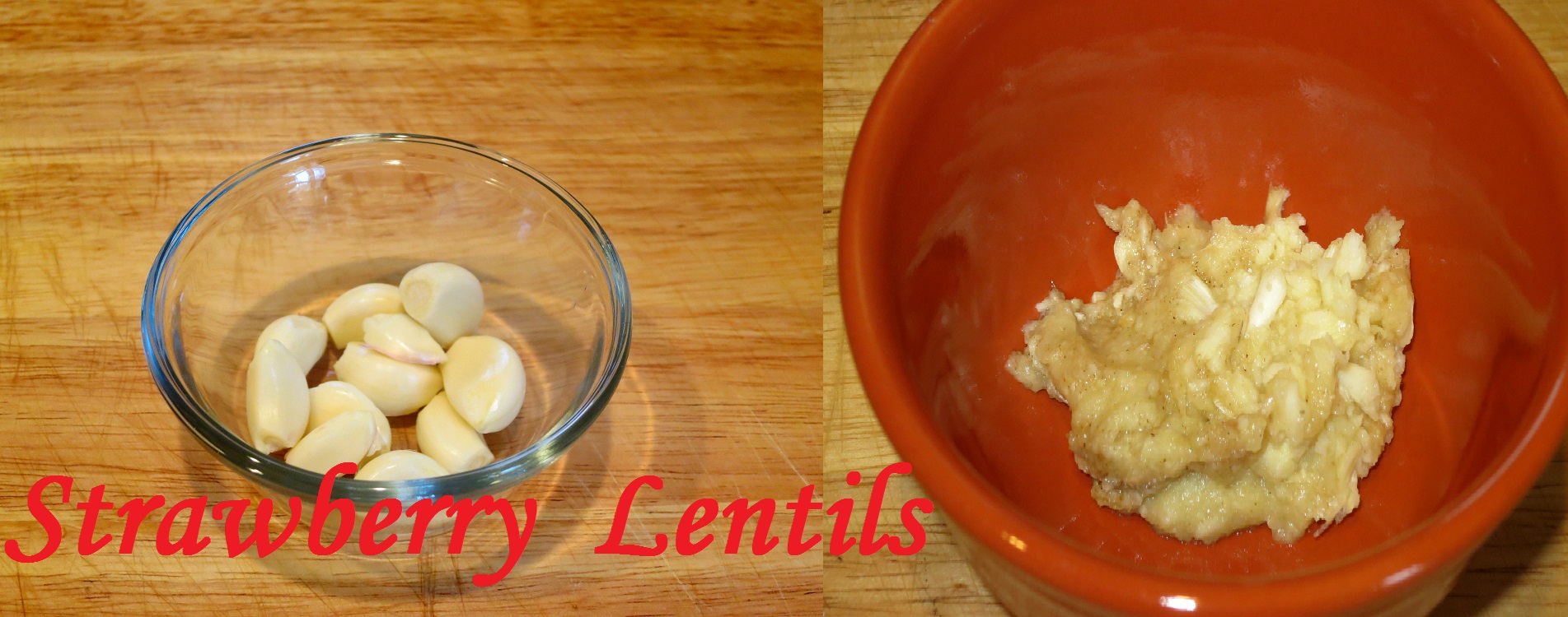 - Next step is to make the tomato gravy. Grind a few garlic cloves with a pinch of salt to a thick paste.