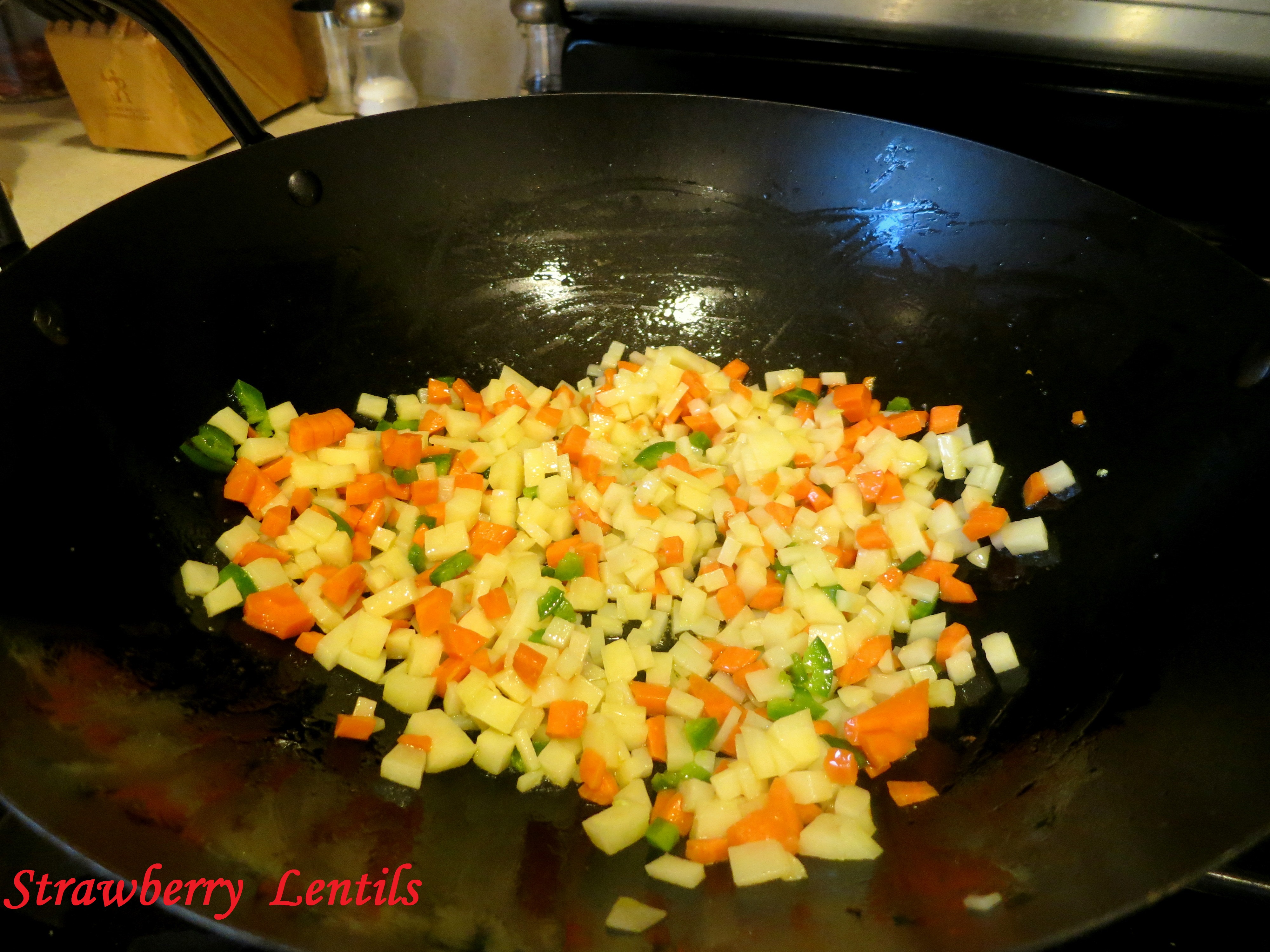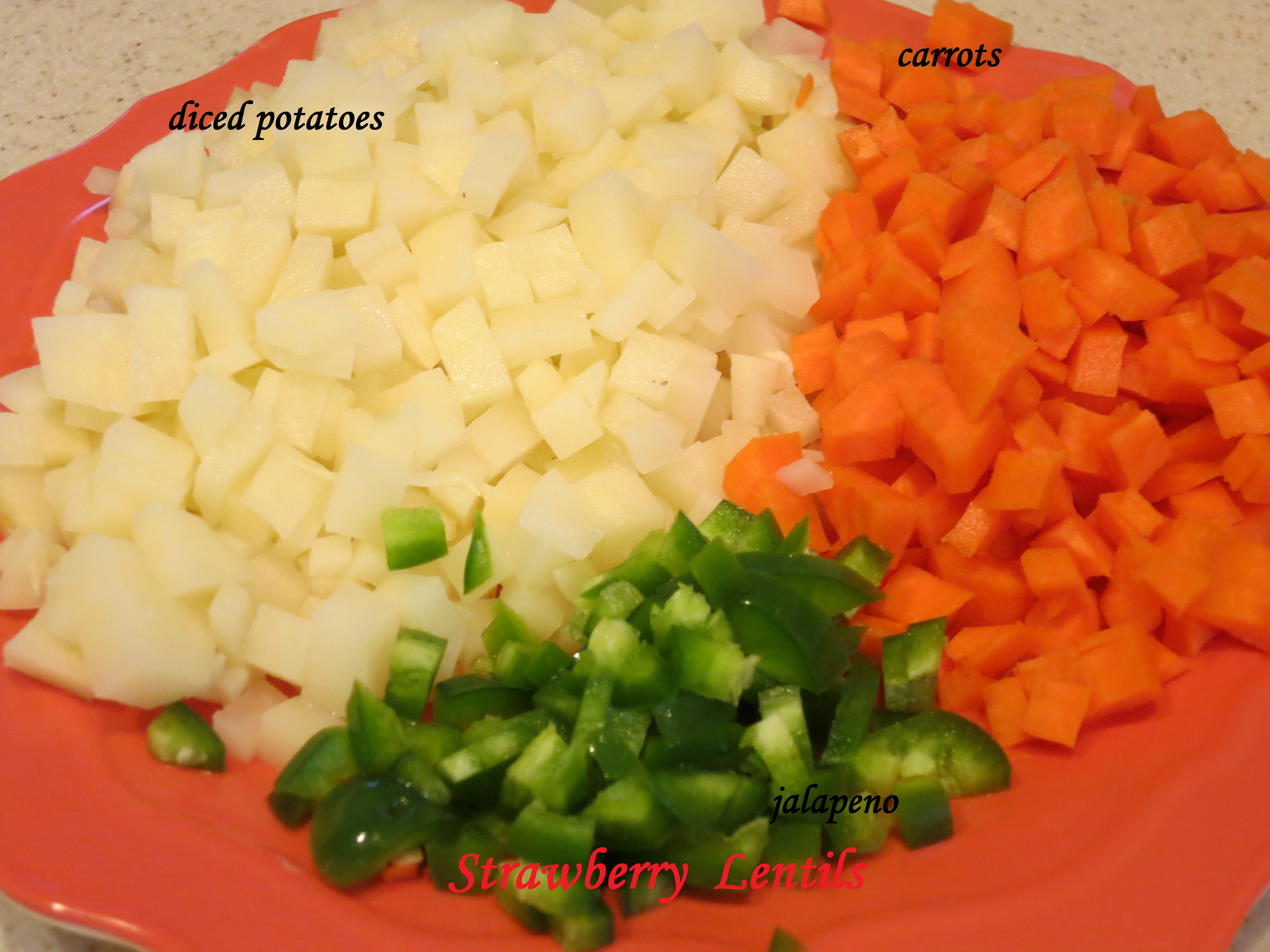 - Also dice one potato and two carrots. I have one jalapeno (seeds removed) chopped for an extra kick.