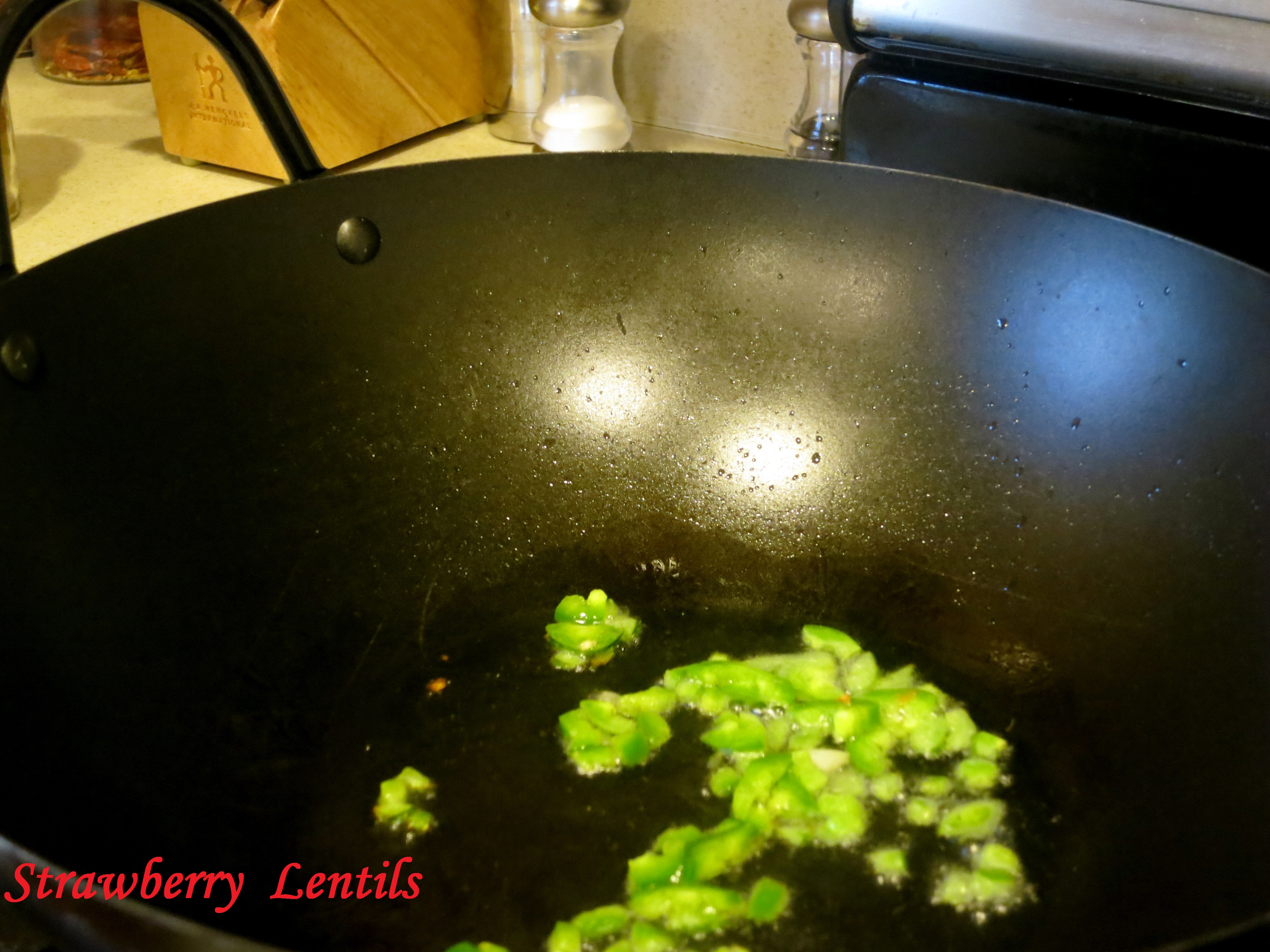 - Heat 1 tbsp of oil in a wok and saute the jalapeno.
