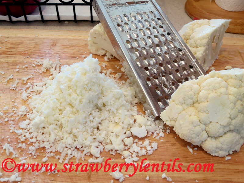 - Cut the cauliflower into big chunks and then grate them.