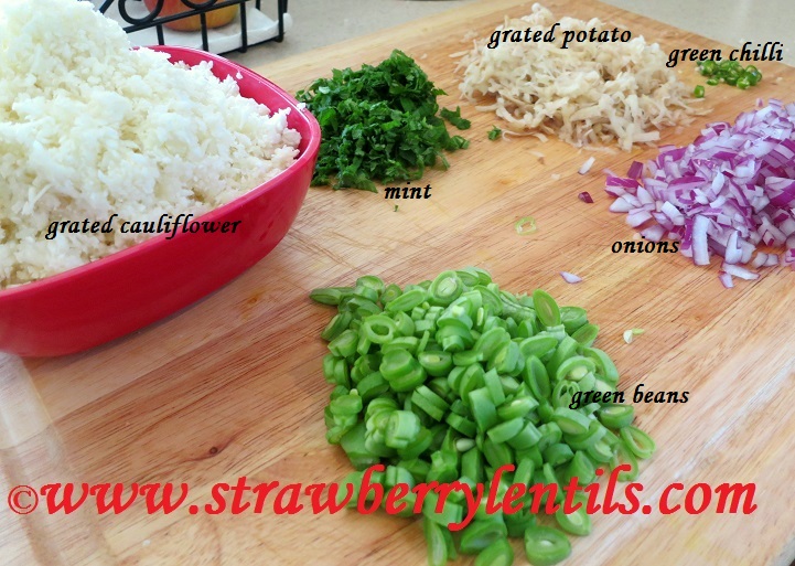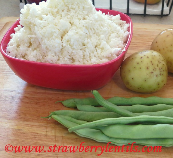 - Just cauliflower is enough, but I just plucked some fresh beans, so I am going to throw them in too. Also I am going to grate a medium potato for texture.