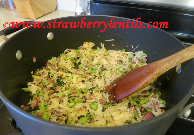 - After a minute add the grated potatoes.