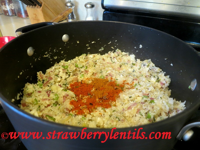 - Once the cauliflower softens add 3 tsp. of red chilli powder (more or less according to your heat preference) and 1 tsp of garam masala. You can also add a tsp. of turmeric powder.