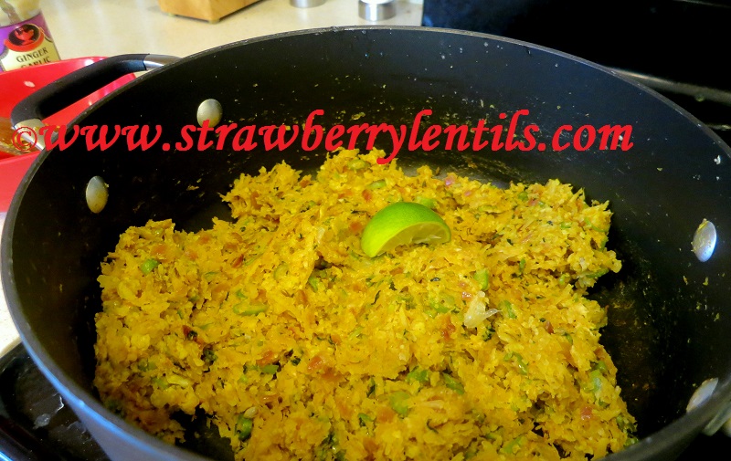 - Mix everything together and allow to cook for 2 more minutes. Everything will blend together and roll like a ball. Turn off the heat and let it cool down for 5 – 10 minutes. Then squeeze in the juice of 1/2 lemon for some acid.