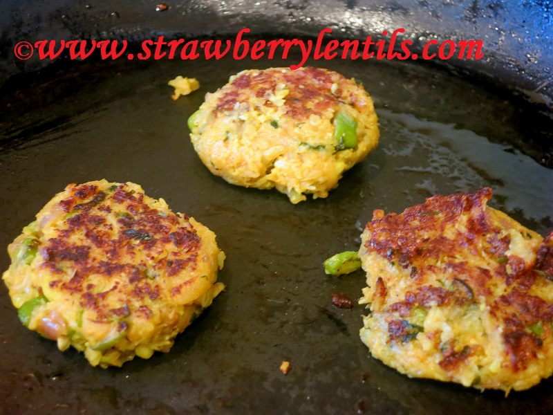 - Heat oil in a skillet, and place the patties gently. It is okay if the patties don’t perfectly hold together.