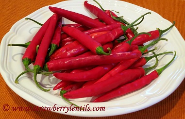 These beautiful red chillies came from my neighbor’s garden (She generously supplies her garden veggies throughout summer).  So gorgeous….so hot 🙂 I love adding them in all my cooking from upma to fried rice.  A few days back my neighbor’s son walked in with the handful of these and said ” I want you to have this, they are special because these are the last chillies in the plant”. Thank God for these beautiful children filled up with so much love 🙂 I promised him I will make something special with his special chillies.