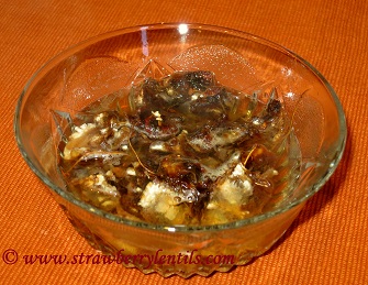 • Dilute the tamarind juice with water. It is hard to correctly predict how much “puli” (tamarind) you will need. I always try to make more than enough and store the rest in the fridge and try to use it within a couple of days.