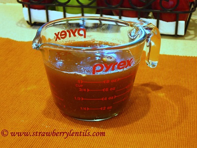 • Soak tamarind in water. The longer you soak , the more you can get out of the tamarind. Ideally, you soak it for a couple of hours before you need it. I almost always forget to do that, so I just soak the tamarind in water and heat in the microwave for 45 seconds. This softens the tamarind and makes it easier to get the juice out.