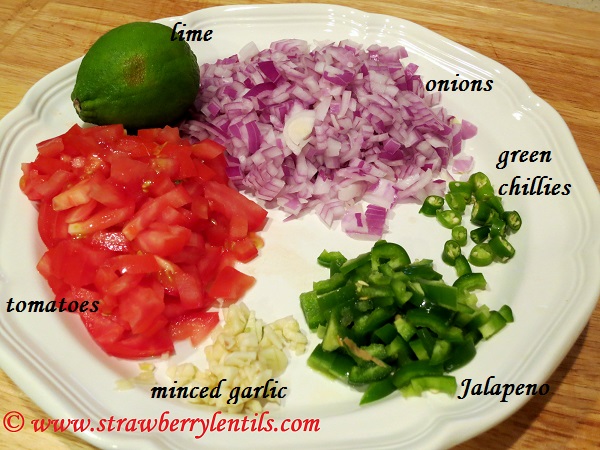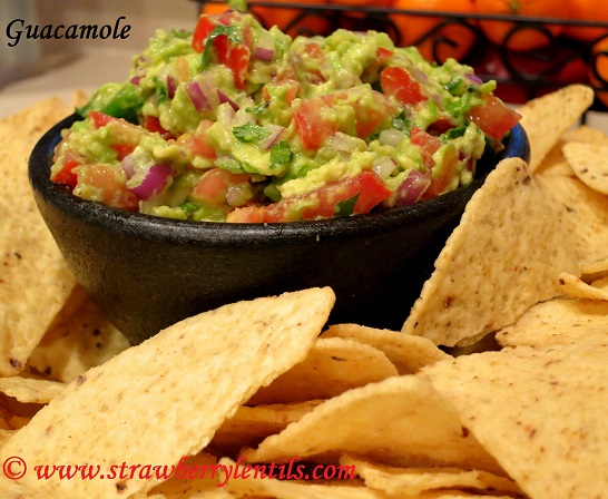 There are countless Indian movies with story lines in which boy meets girl, girl hates boy, boy tries to woo the girl over and over and finally the girl falls head over heels for the boy and they live happily ever after ๐ . Happened in my life too, except that the boy was the sexy green avocado. Long long ago, so long ago after listening to so many stories about the awesomeness of guacamole, finally came the day when I could actually taste it. ย “Disappointment” doesn’t begin to describe how I felt that day. All I tasted was the avocado baby food, completely mashed with no identifiable flavors, I kept searching for some acid to cut the creaminess but in vain. I couldn’t help but wonder if there is something wrong with my taste buds as I was unable to appreciate this widely popular dip. I was cautiously staying away from it for a long time. But luckily it was one of those “first day, worst day” kind of deals. Since then, every guacamole I tasted has been better than its previous version. Over time I figured out the DNA for a good guacamole : chunky texture, lots of acid, spicy kicks and crunchy onions , and most of all, keeping it pure and not contaminating with sour cream and similar stuff.