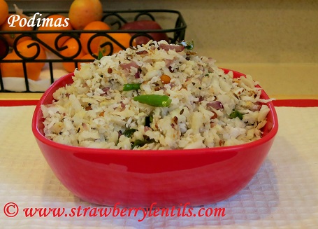 Here is the method of preparation for podimas (which is also called as ‘puttu’ sometimes). I have used raw plantains for this recipe, this can also be done with potatoes or carrots or yam. This is a very simple recipe, but the trick is to get the texture right.