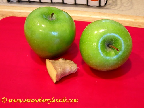 - I used two granny smith apples and an 1 inch piece of ginger.