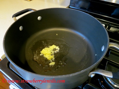 - Heat 2 tbsp. of oil in a pot and fry the grated ginger.