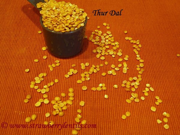 - I use Thur Dal for rasam. (Thur dal is the dried and split pigeon peas). Take about 1/4 cup of Thur dal.
