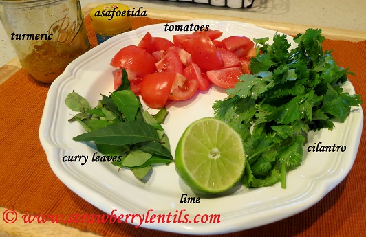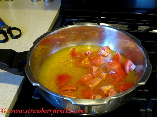 - Wash thur dhal, add a cup of water, add turmeric and asafoetida to the water and also add the tomatoes. Cook until dal is soft. I use a pressure cooker as it cooks dal fast and retains nutrients.