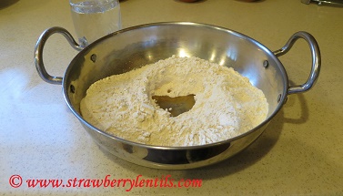 - Mix the flour, salt and oil and then add water and knead it to a smooth dough. Cover with wet cloth or wet paper towel and set aside for 2 hours.