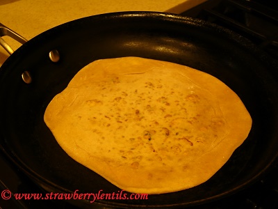 - Heat a skillet and cook the parathas.