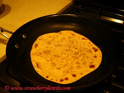 - Cook both sides until brown spots appear. You can rub with little oil or dab with a butter stick.