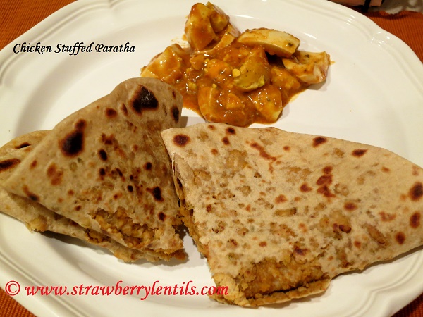 The chicken parathas are ready, serve hot with your favorite curry. ( I served it with a simple egg white curry).