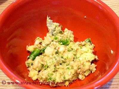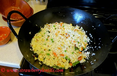 • Cook rice by your preferred method. You can also use leftover rice. Adding a tsp of oil to the water while boiling rice helps the grains to stay separate.