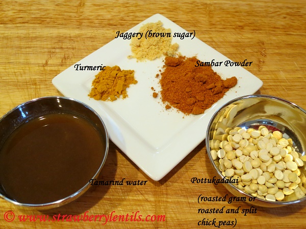 1. Wow, I had no idea roasted gram was so beneficial and can be used to make sambhar! This neat trick would do wonders to my hectic schedule. Thanks a lot for the recipe.